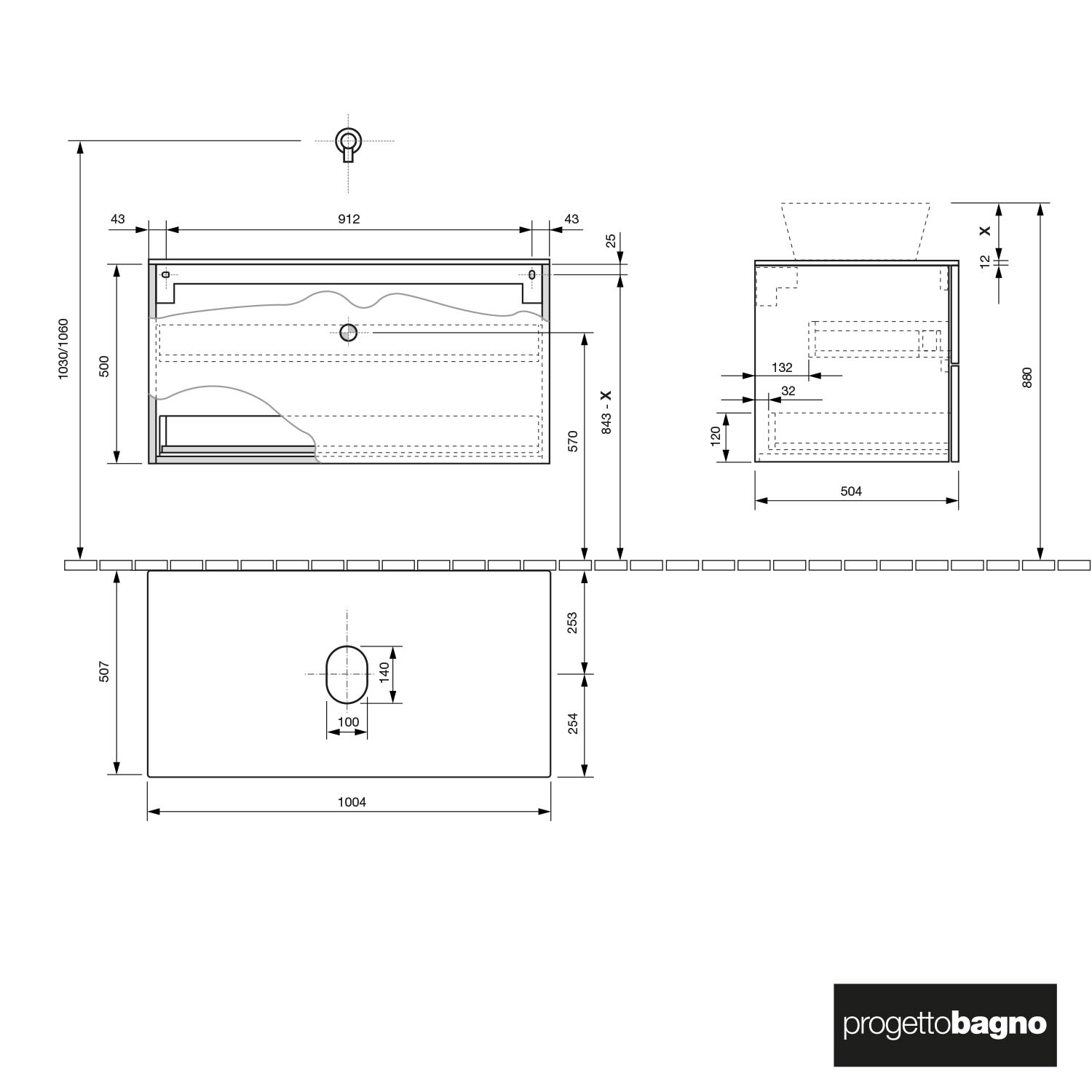 progettobagno Elba Modular Glass Waschtischkonsole 100 cm ohne Hahnlochbohrung