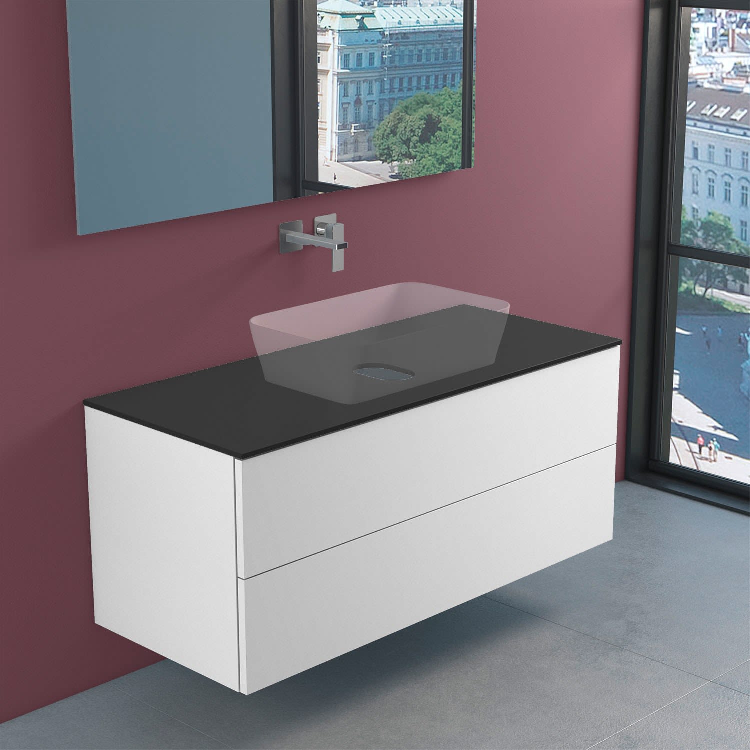 progettobagno Elba Modular Glass Waschtischkonsole 120 cm ohne Hahnlochbohrung