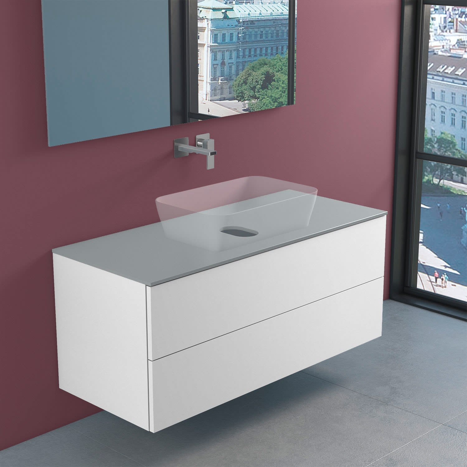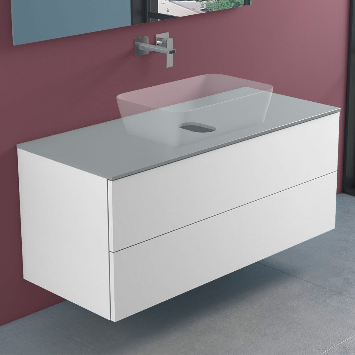 progettobagno Elba Modular Glass Waschtischkonsole 120 cm ohne Hahnlochbohrung