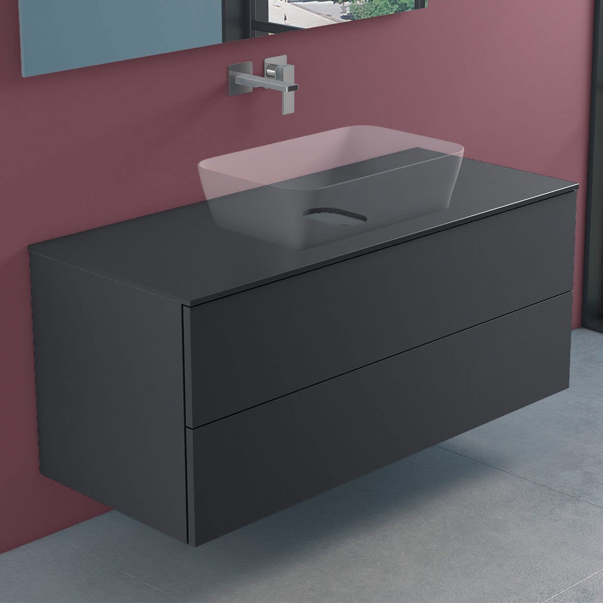 progettobagno Elba Modular Glass Waschtischkonsole 120 cm ohne Hahnlochbohrung