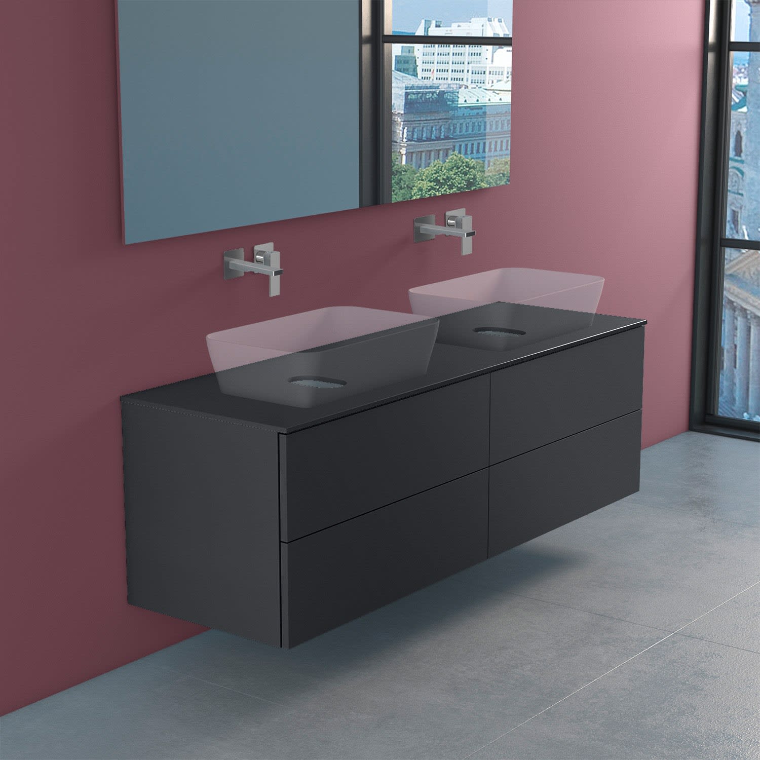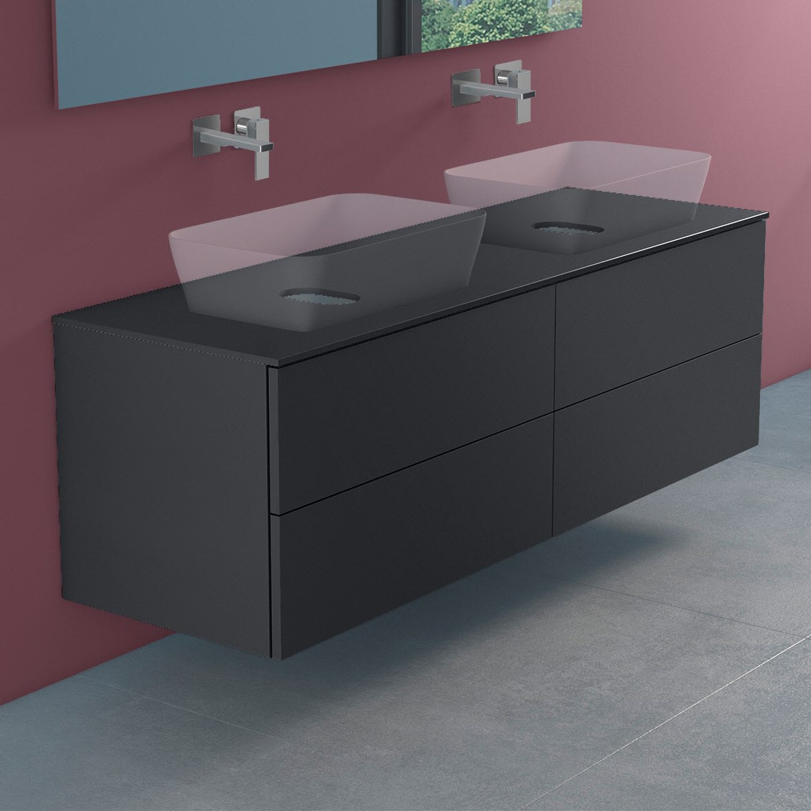 progettobagno Elba Modular Glass Doppel Waschtischkonsole 160 cm ohne Hahnlochbohrung