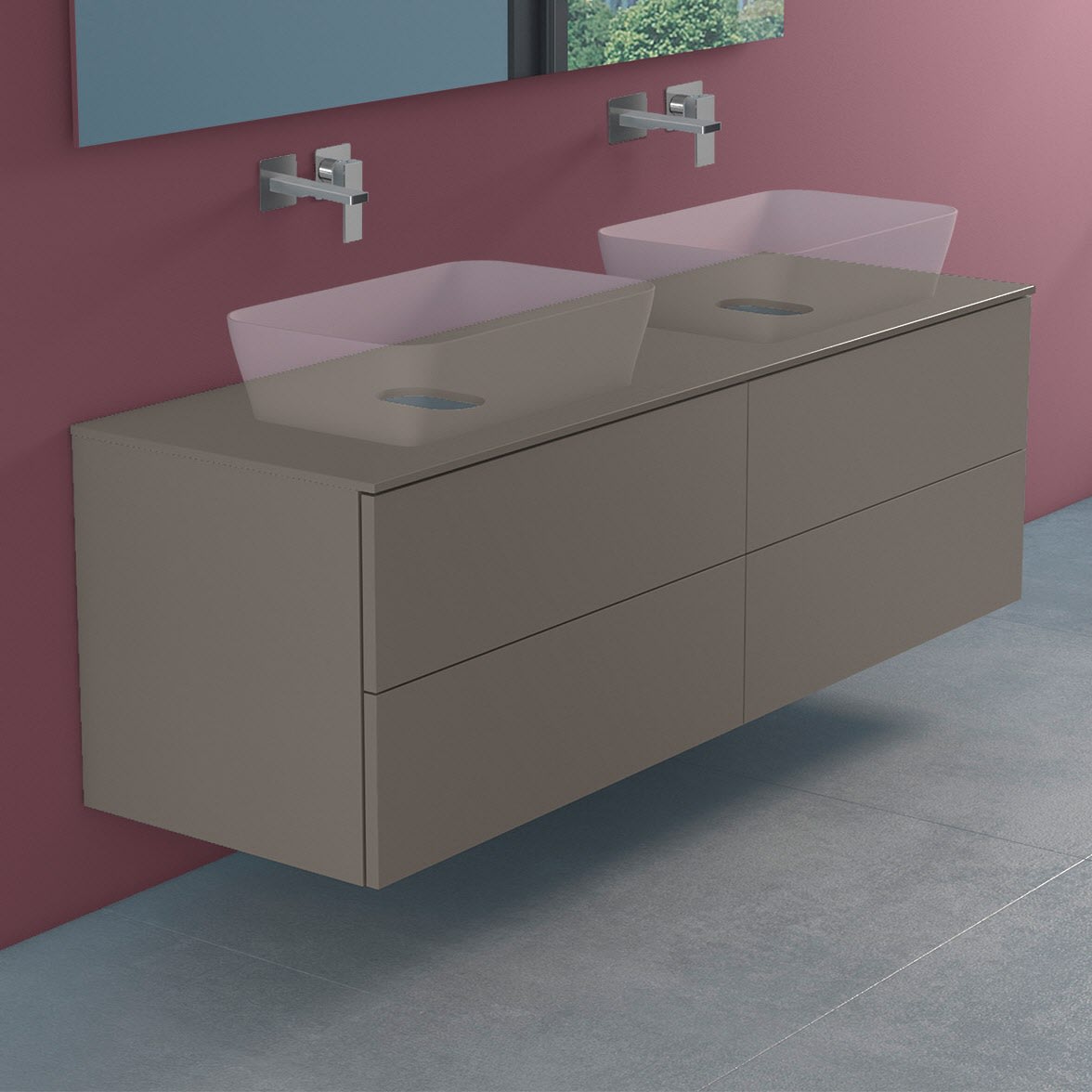 progettobagno Elba Modular Glass Doppel Waschtischkonsole 160 cm ohne Hahnlochbohrung