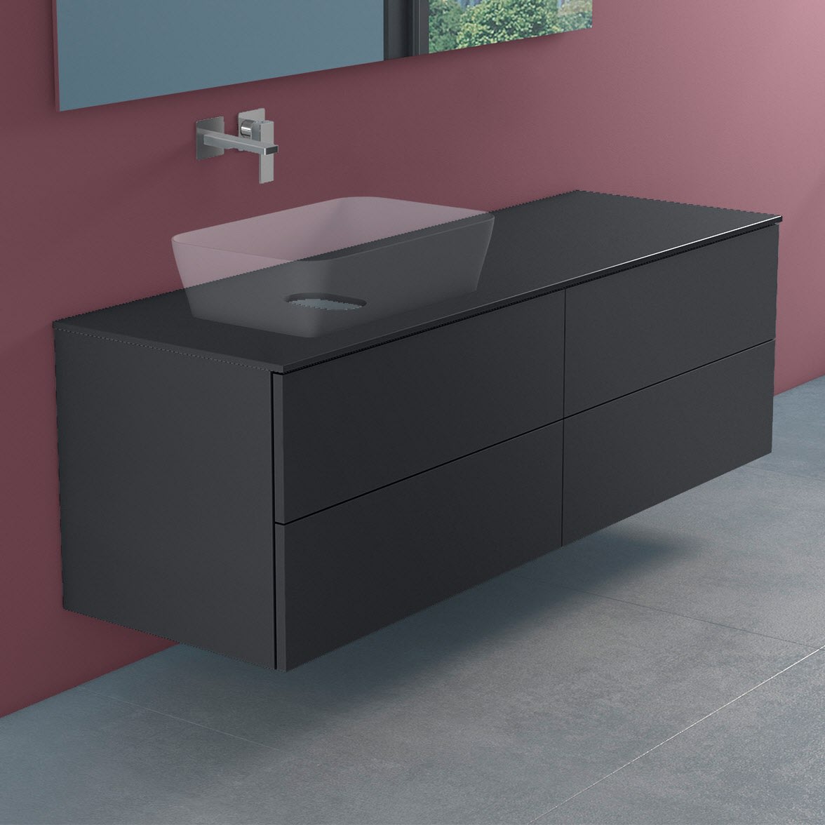 progettobagno Elba Modular Glass, Ausführung links Waschtischkonsole 160 cm ohne Hahnlochbohrung