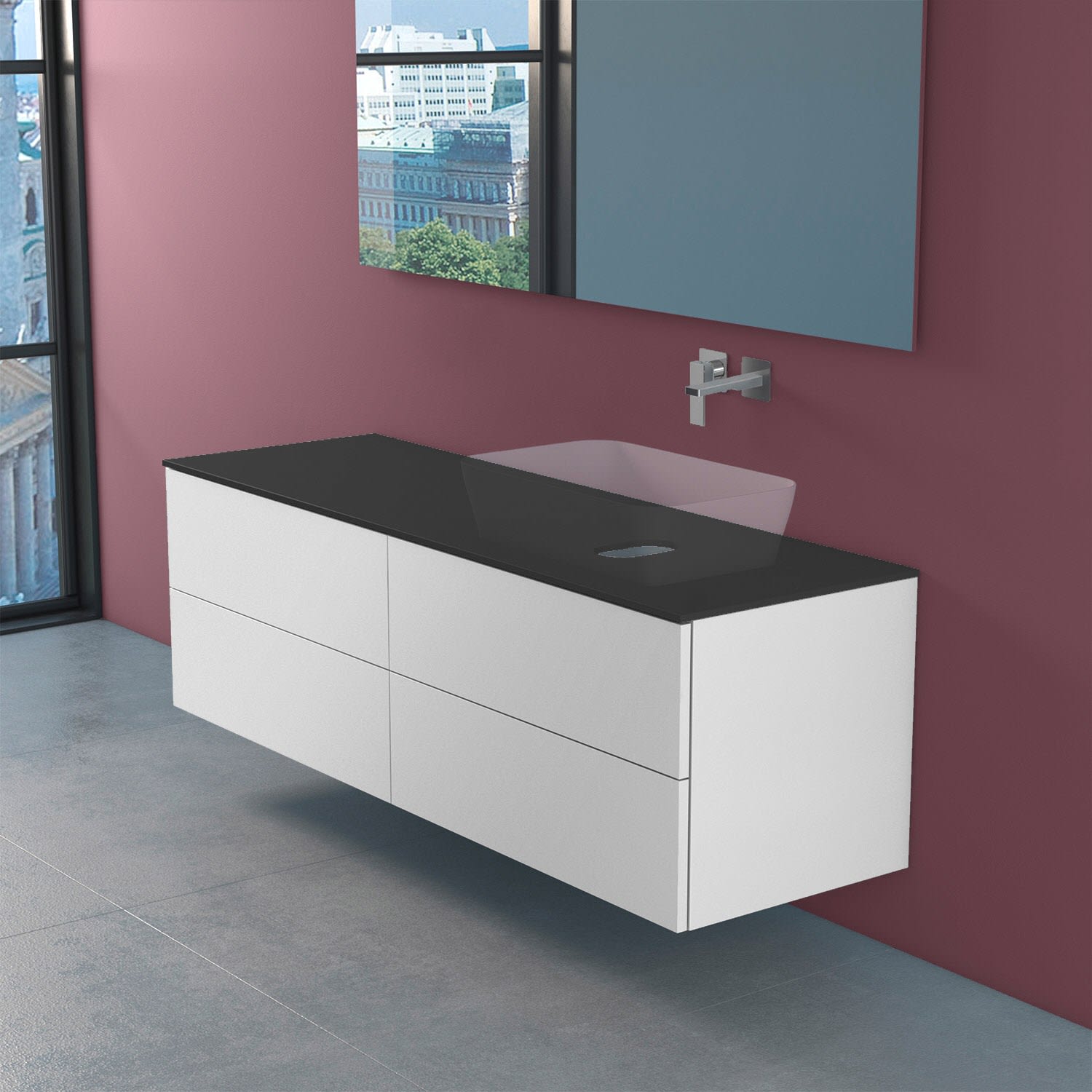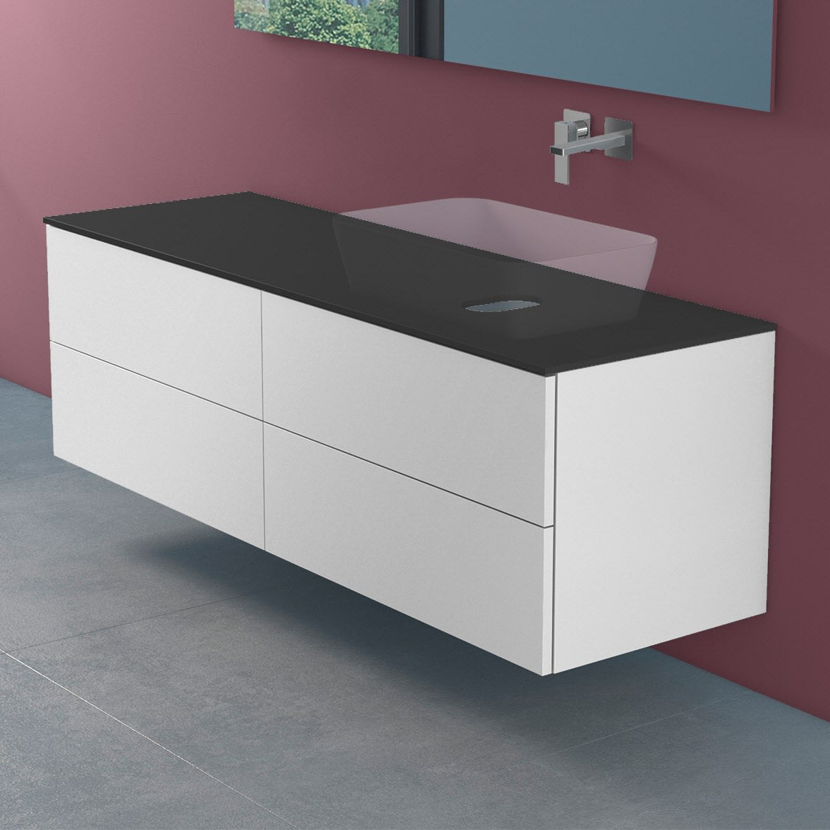 progettobagno Elba Modular Glass, Ausführung rechts Waschtischkonsole 160 cm ohne Hahnlochbohrung