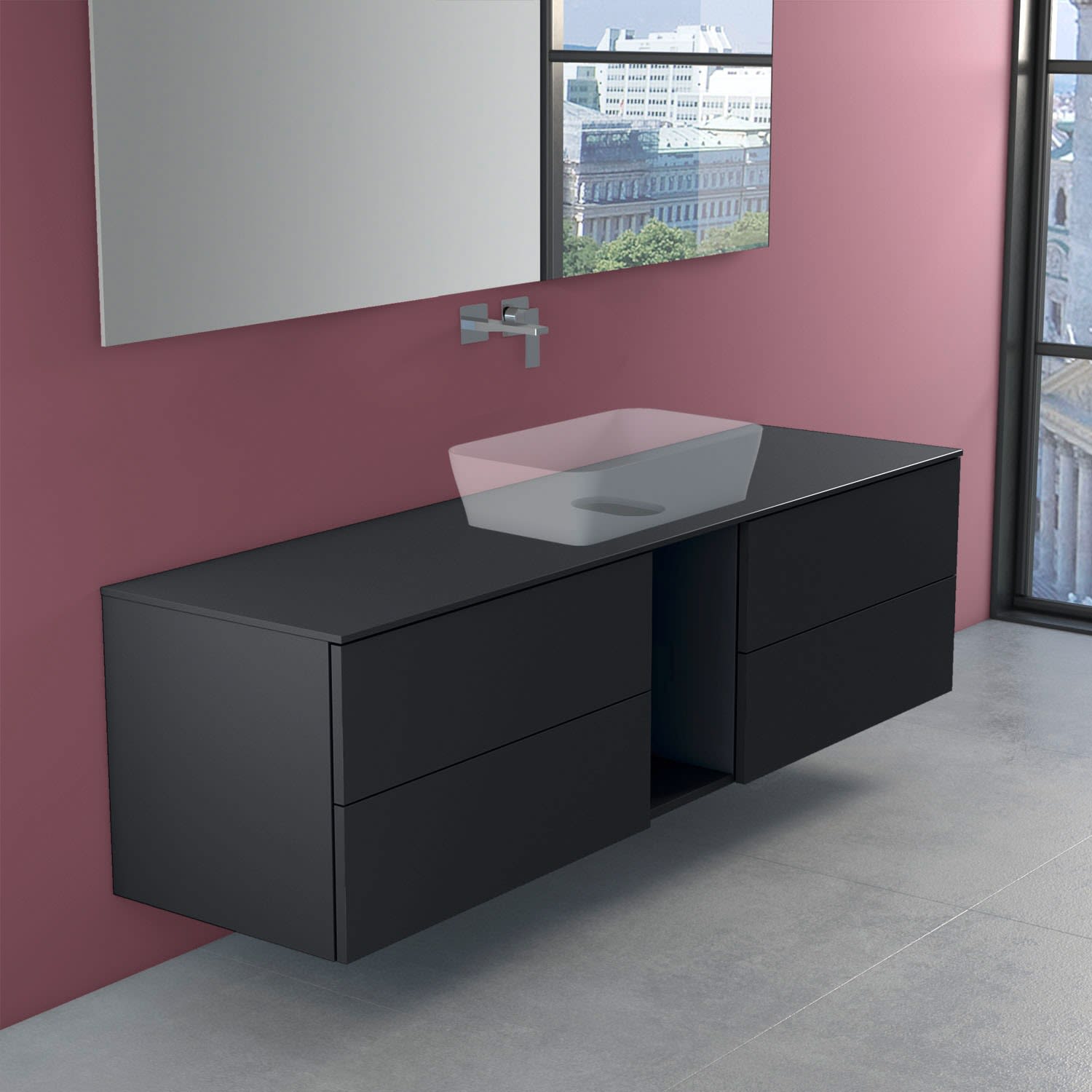 progettobagno Elba Modular Glass Waschtischkonsole 190 cm ohne Hahnlochbohrung
