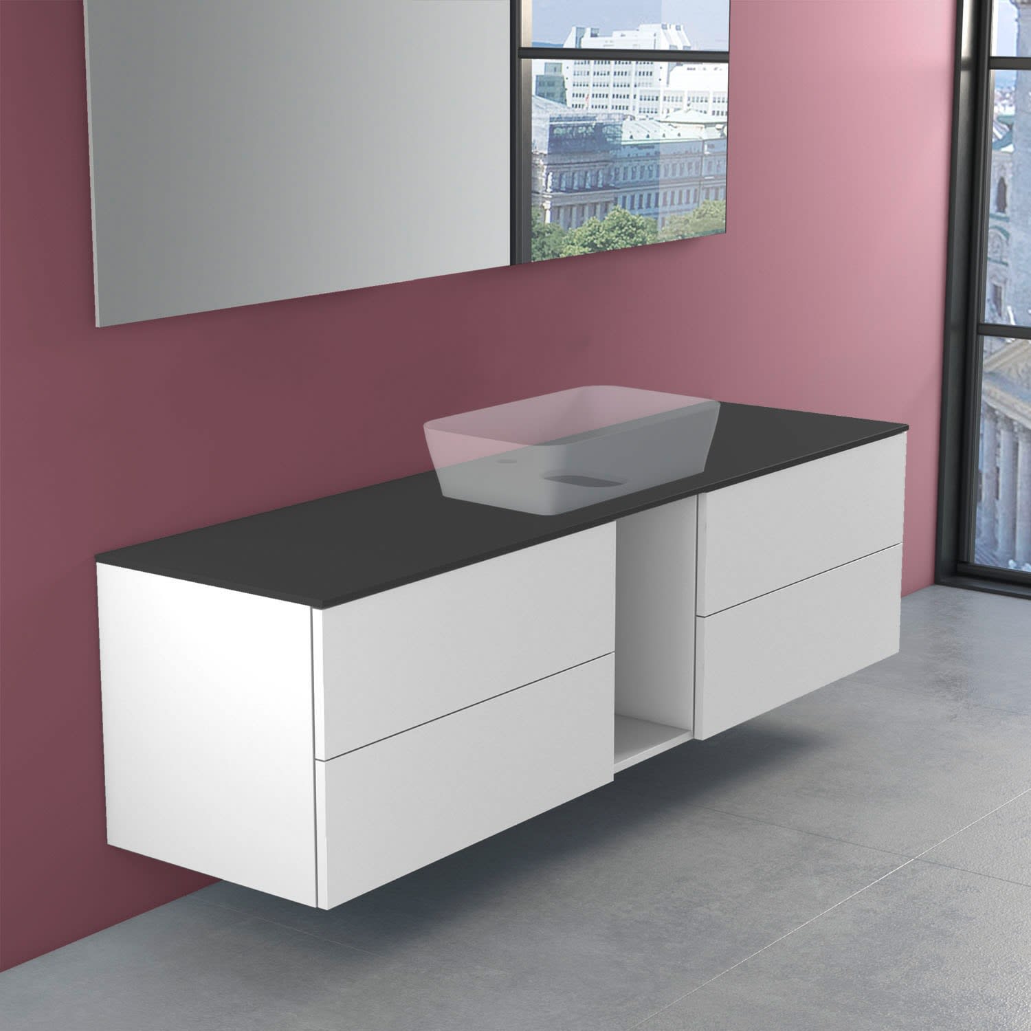 progettobagno Elba Modular Glass Waschtischkonsole 190 cm mit Hahnlochbohrung