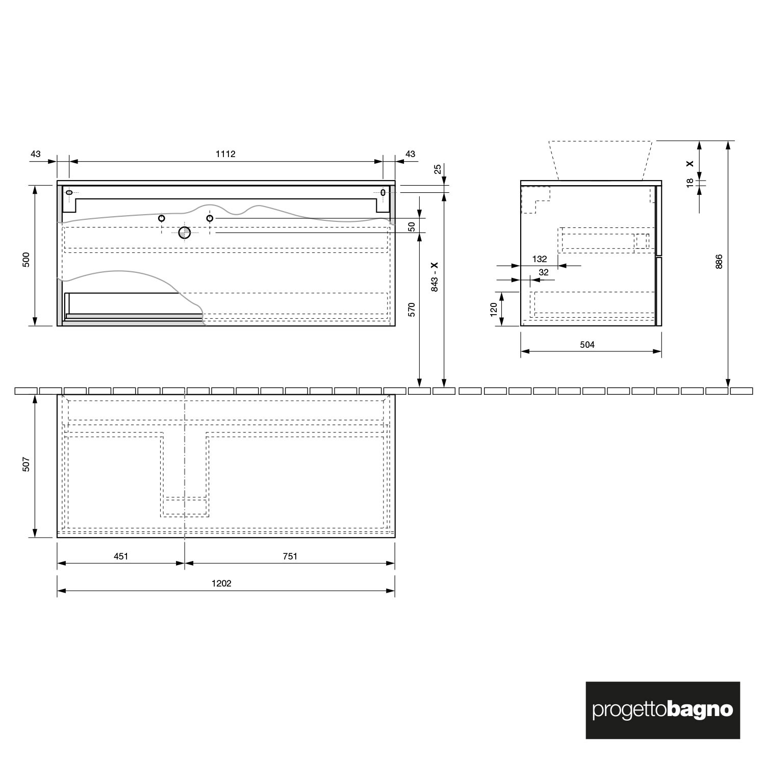 progettobagno Elba Modular Waschtischkonsole 120 cm, Ausführung links