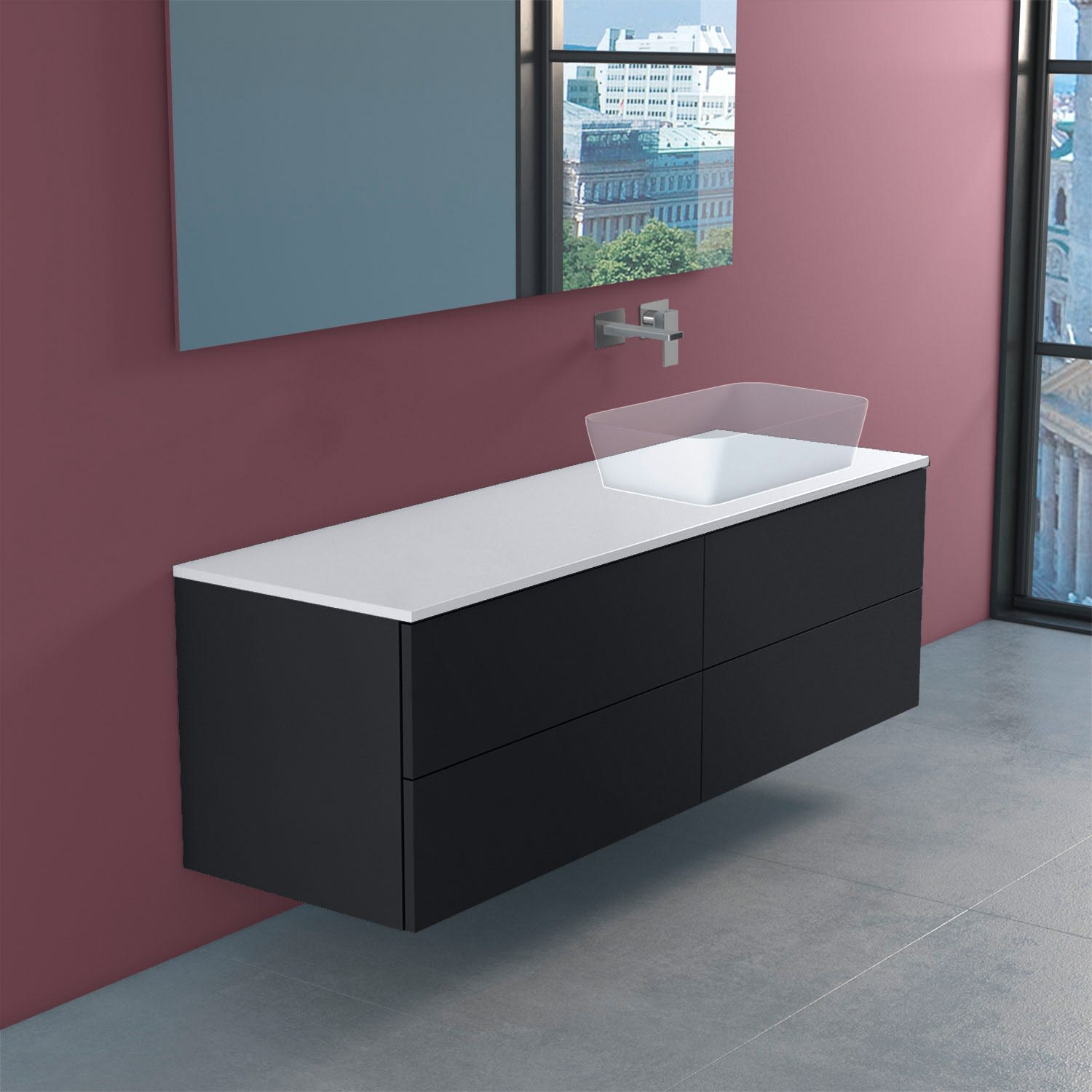 - Waschtischplatte ohne Hahnlochbohrung, ohne Ausschnitt!