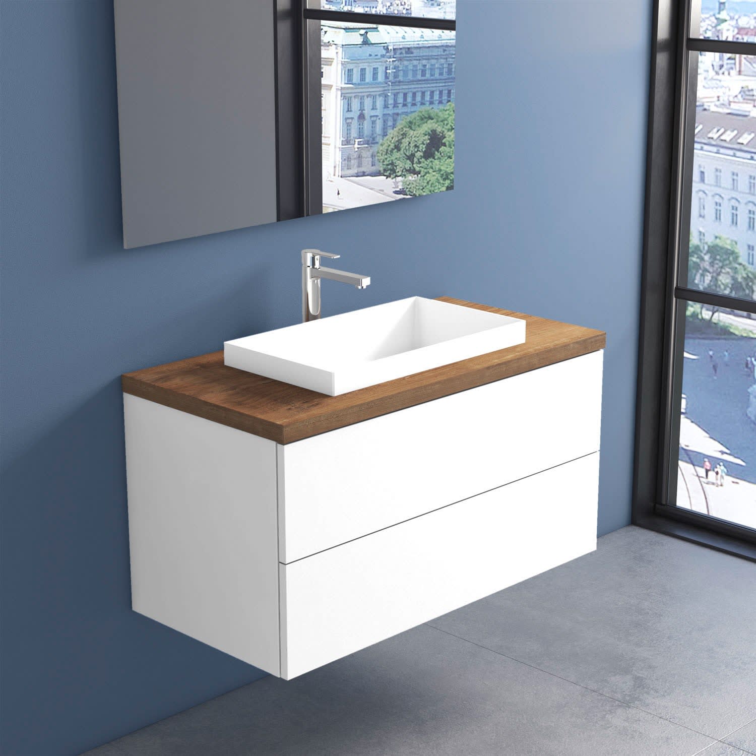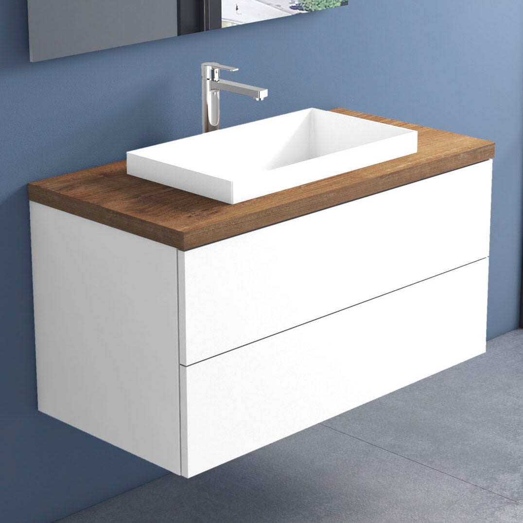 progettobagno Elba Terra Unterschrank 100 cm mit Platte in Holzdekor, Hahnlochbohrung und ELY 60 Einbauwaschtisch