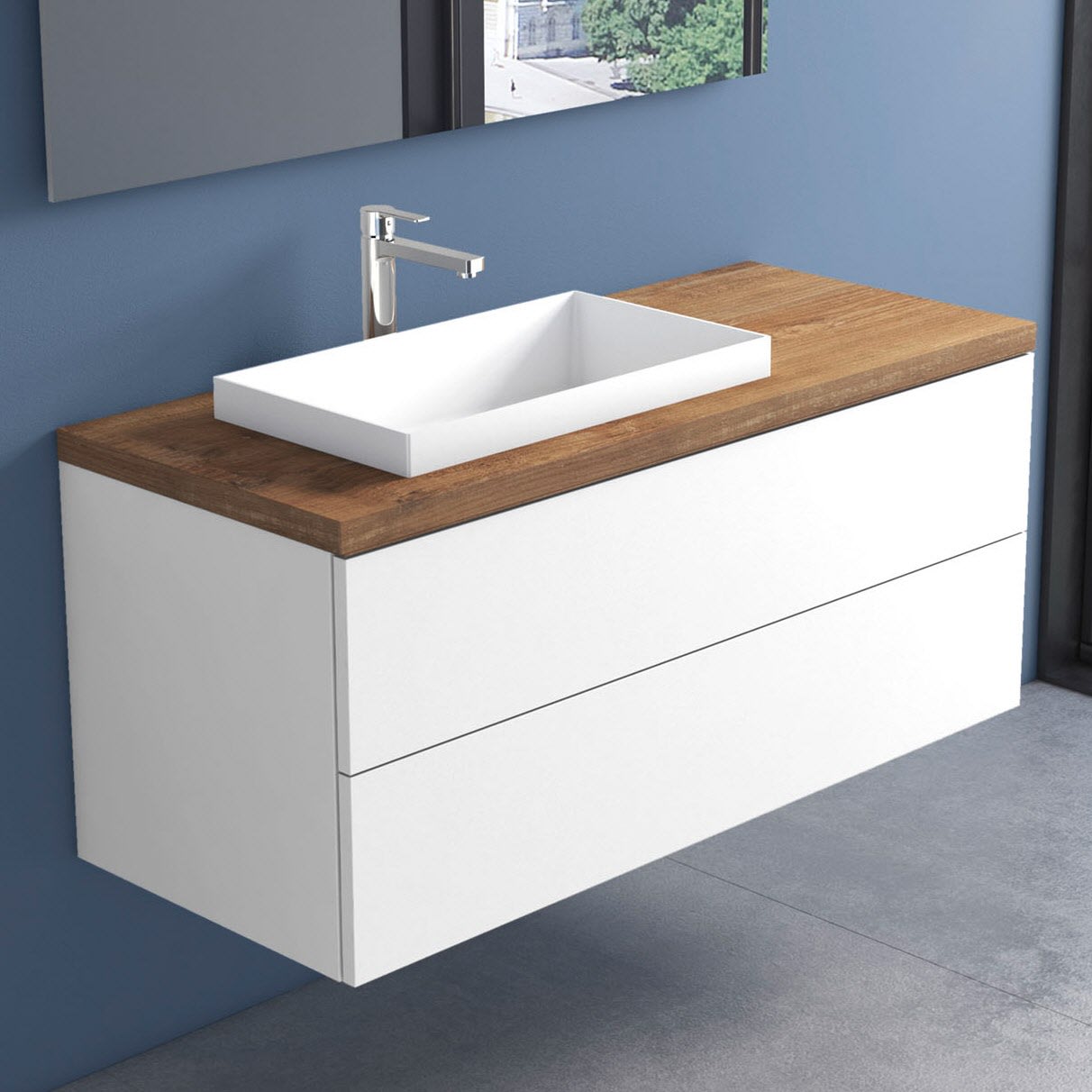 progettobagno Elba Terra Unterschrank 120 cm mit Platte in Holzdekor,Hahnlochbohrung und ELY 60 Einbauwaschtisch , Ausführung links