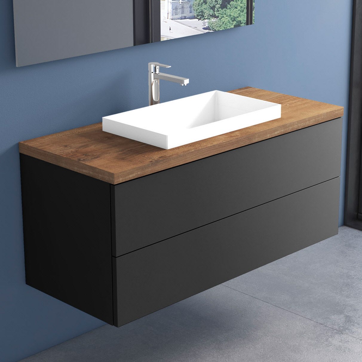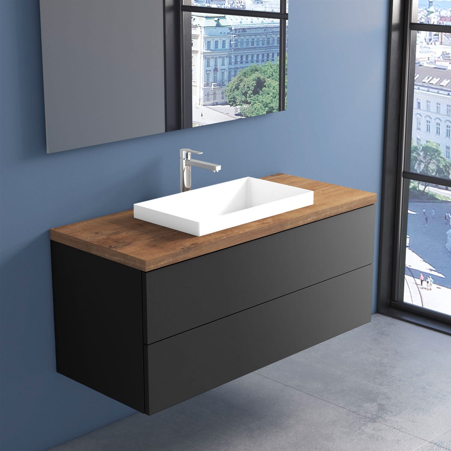 progettobagno Elba Terra Unterschrank 120 cm mit mit Platte in Holzdekor, Hahnlochbohrung und ELY 60 Einbauwaschtisch