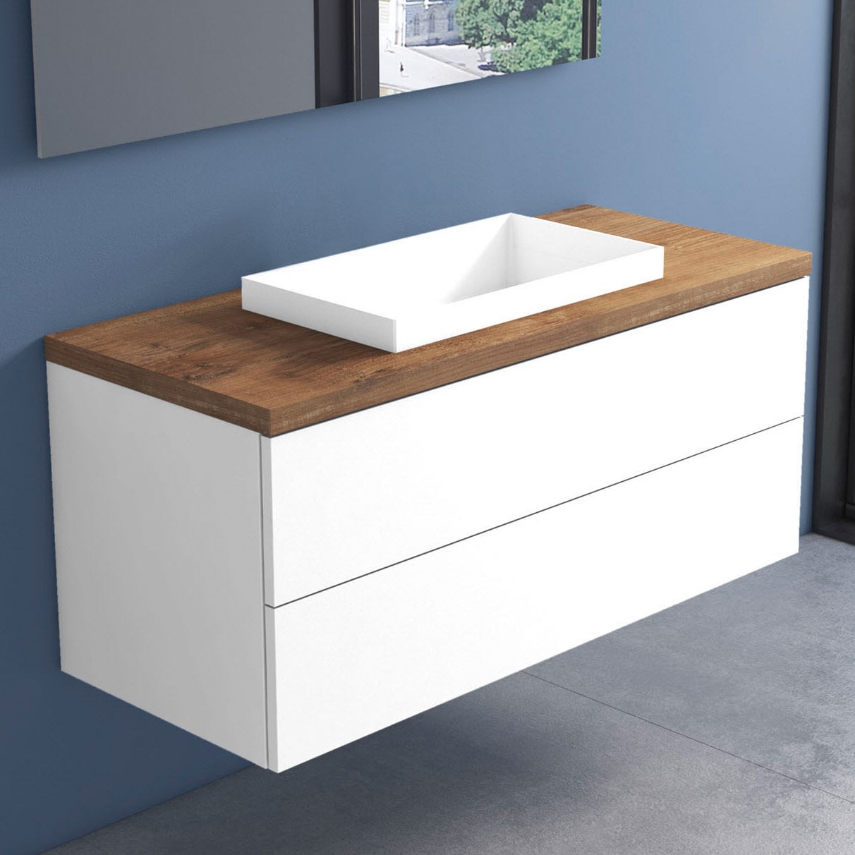 progettobagno Elba Terra Unterschrank 120 cm mit Platte in Holzdekor, ohne Hahnloch und ELY 60 Einbauwaschtisch