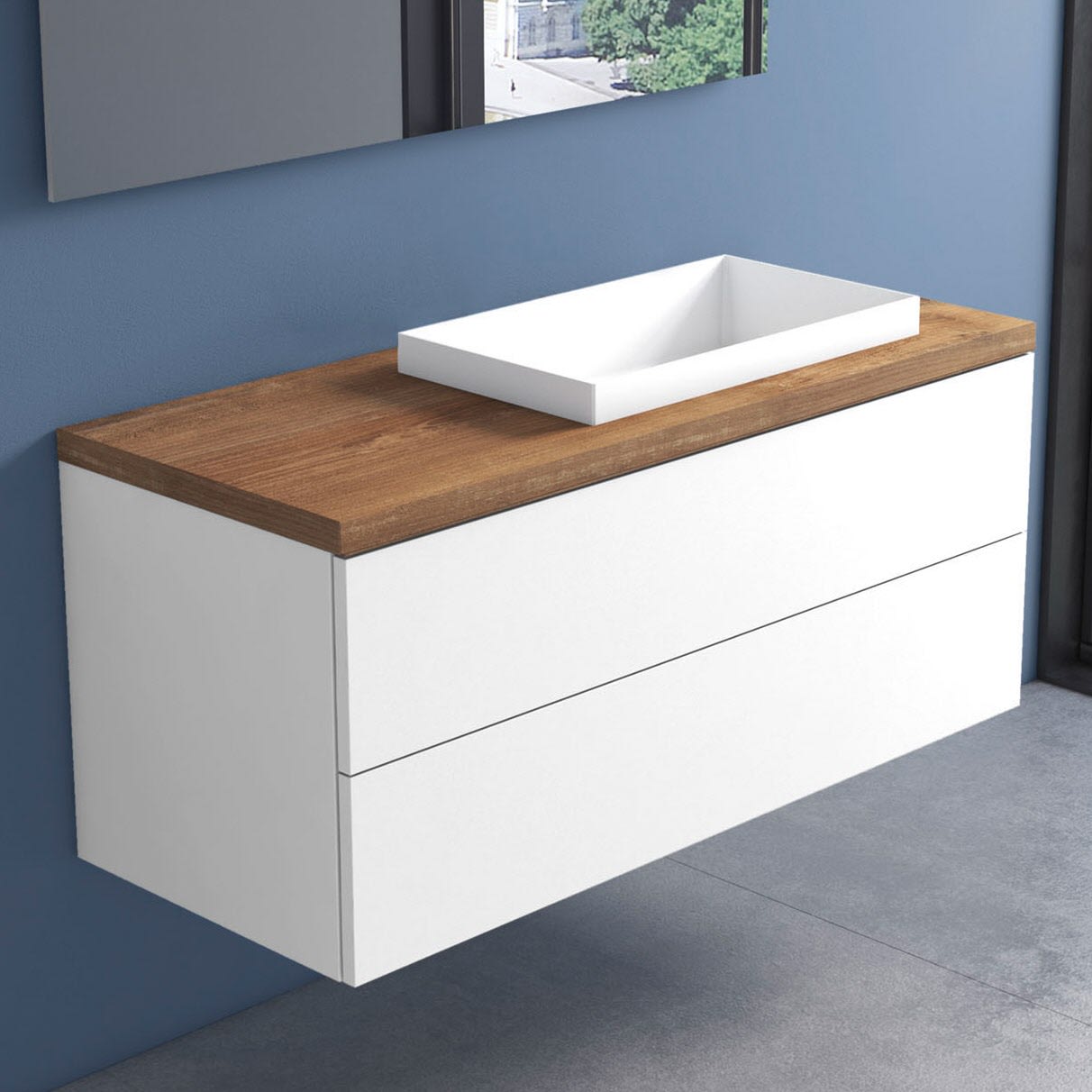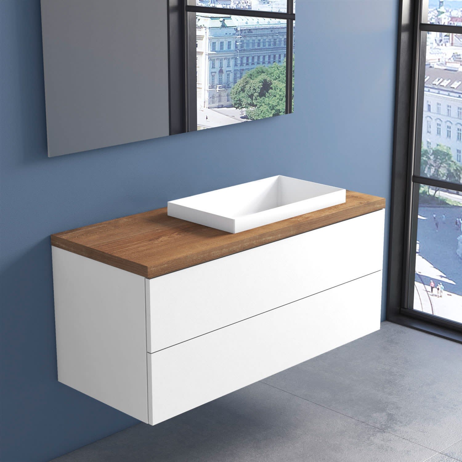 progettobagno Elba Terra Unterschrank 120 cm mit Platte in Holzdekor, ohne Hahnloch und ELY 60 Einbauwaschtisch , Ausführung rechts