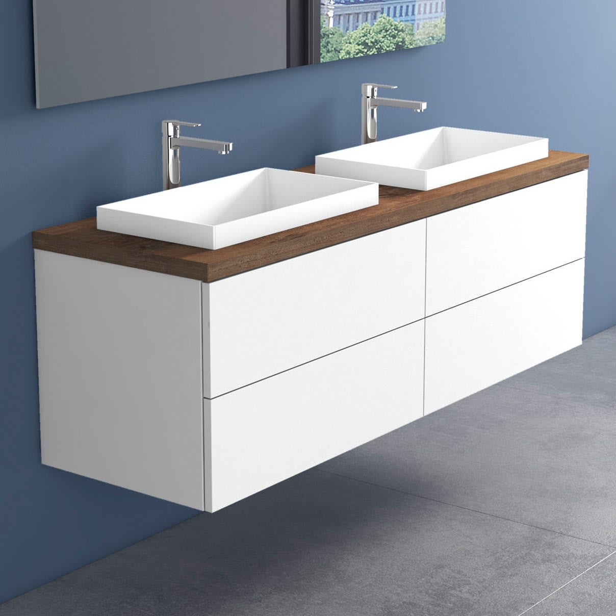 progettobagno Elba Terra Unterschrank 160 cm mit Platte in Holzdekor, Hahnlochbohrung und ELY 60 Einbauwaschtisch
