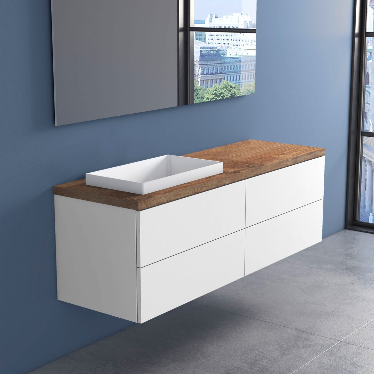 progettobagno Elba Terra Unterschrank 160 cm mit Platte in Holzdekor, ohne Hahnloch und ELY 60 Einbauwaschtisch , Ausführung links