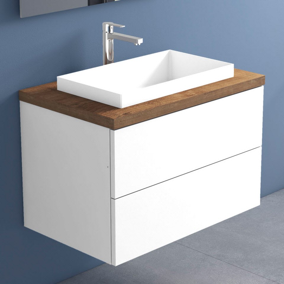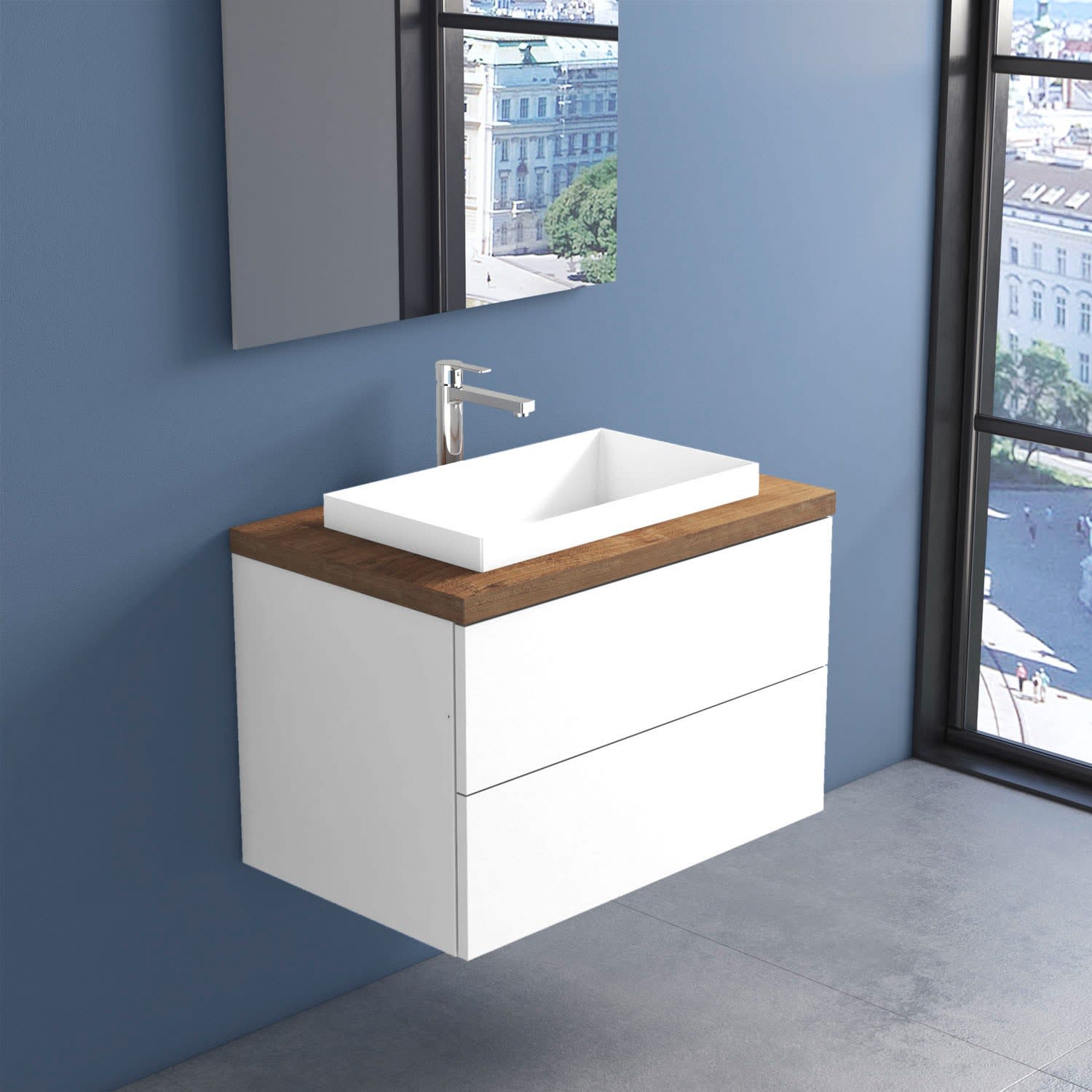 progettobagno Elba Terra Unterschrank 80 cm mit Platte in Holzdekor, Hahnlochbohrung und ELY 60 Einbauwaschtisch