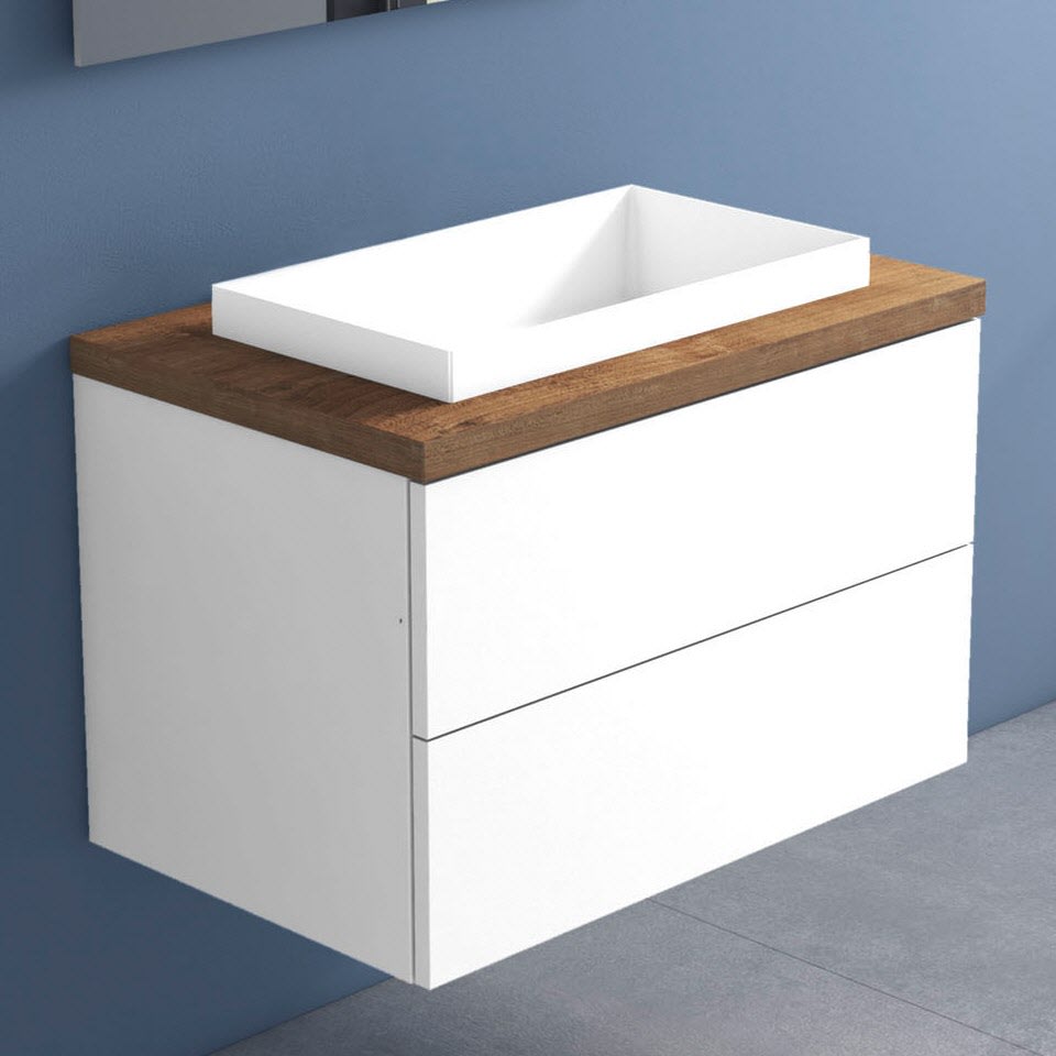 progettobagno Elba Terra Unterschrank 80 cm mit Platte in Holzdekor, ohne Hahnloch und ELY 60 Einbauwaschtisch
