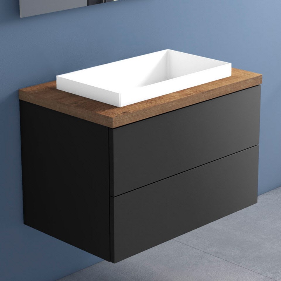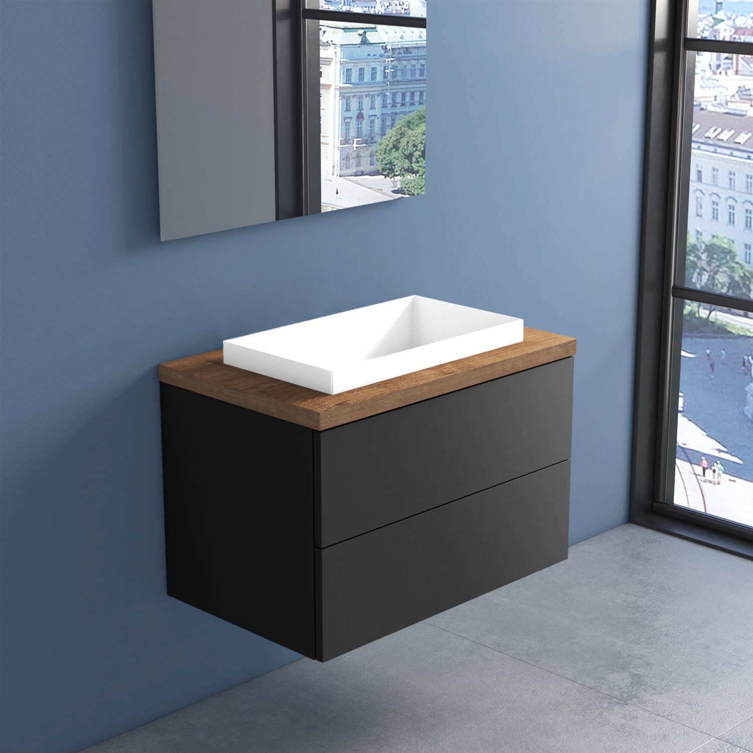 progettobagno Elba Terra Unterschrank 80 cm mit Platte in Holzdekor, ohne Hahnloch und ELY 60 Einbauwaschtisch