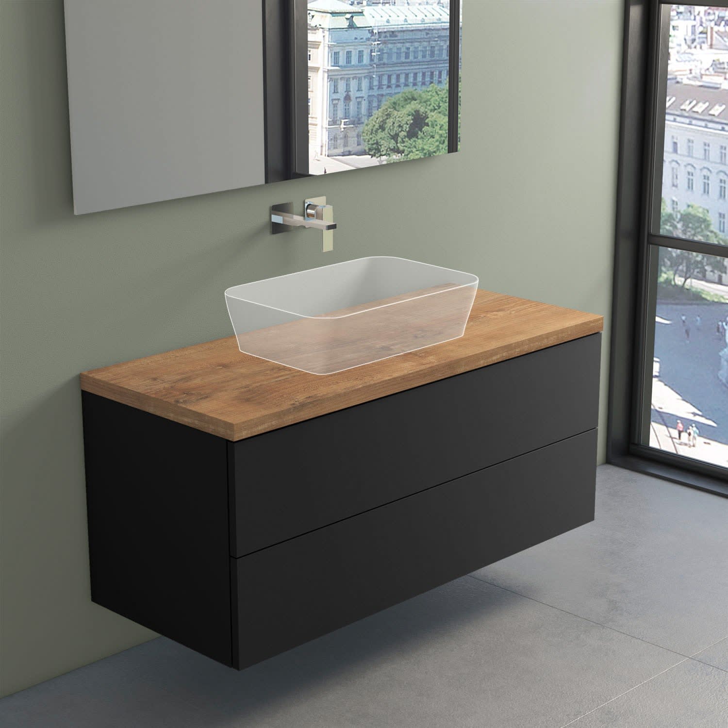 - Waschtisch und Armatur nicht im Lieferumfang enthalten!