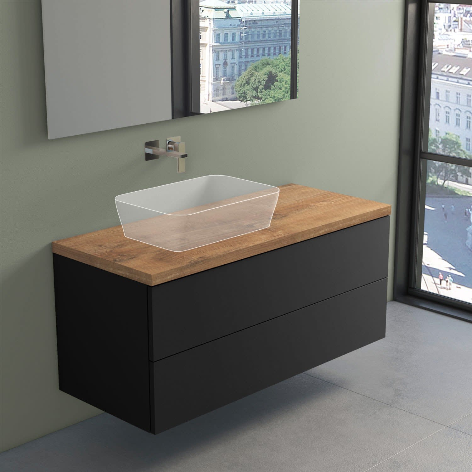 - Waschtisch und Armatur nicht im Lieferumfang enthalten!