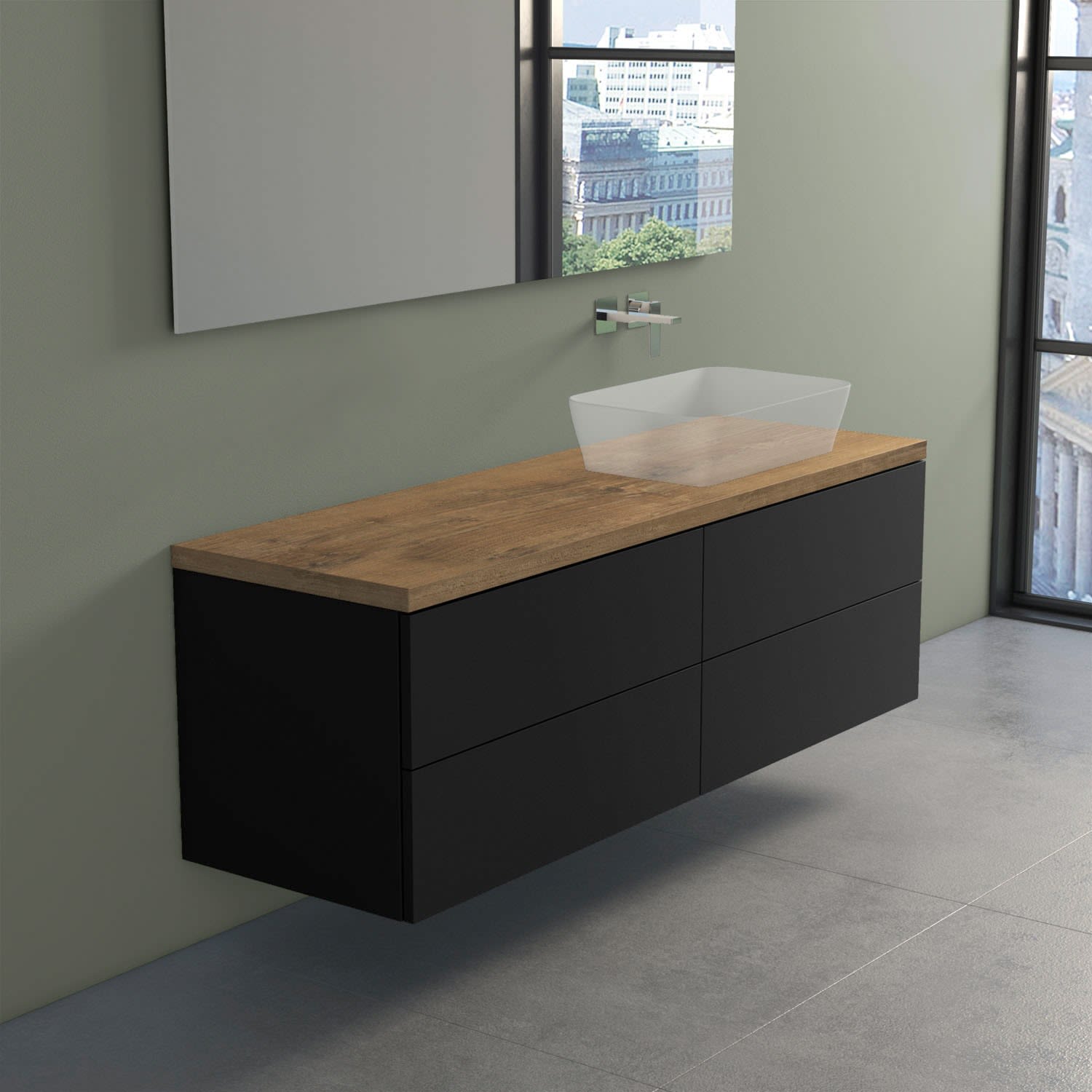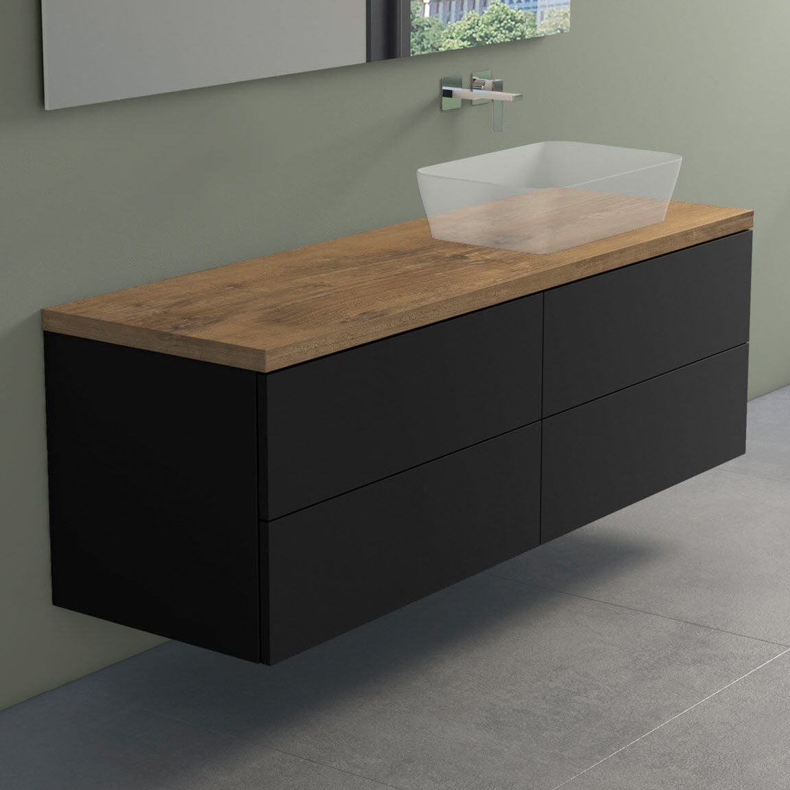 progettobagno Elba Terra Waschtischkonsole 160 cm , Ausführung rechts mit Platte in Holzdekor