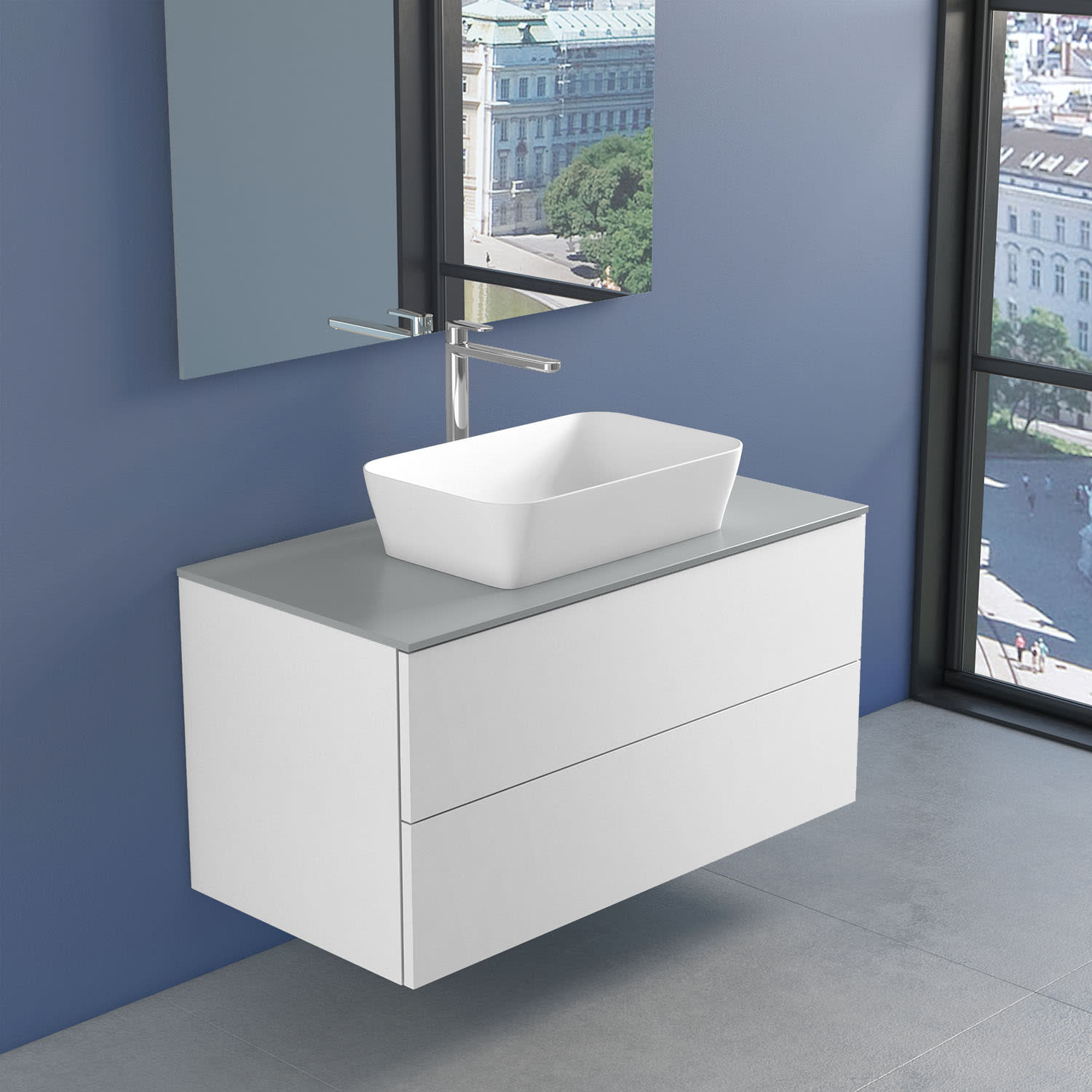 progettobagno Elba Unterschrank 100 cm mit Glasplatte, Hahnlochbohrung und FLY 56 Aufsatzwaschtisch