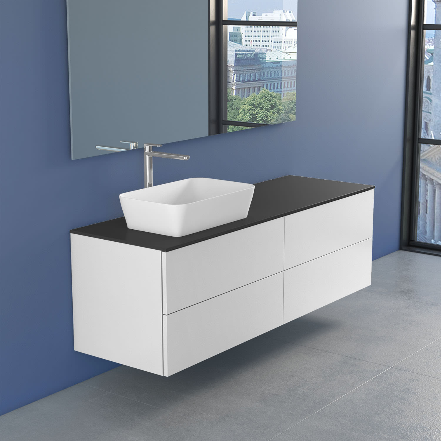 progettobagno Elba Unterschrank 160 cm Links mit Glasplatte, Hahnlochbohrung und FLY 56 Aufsatzwaschtisch
