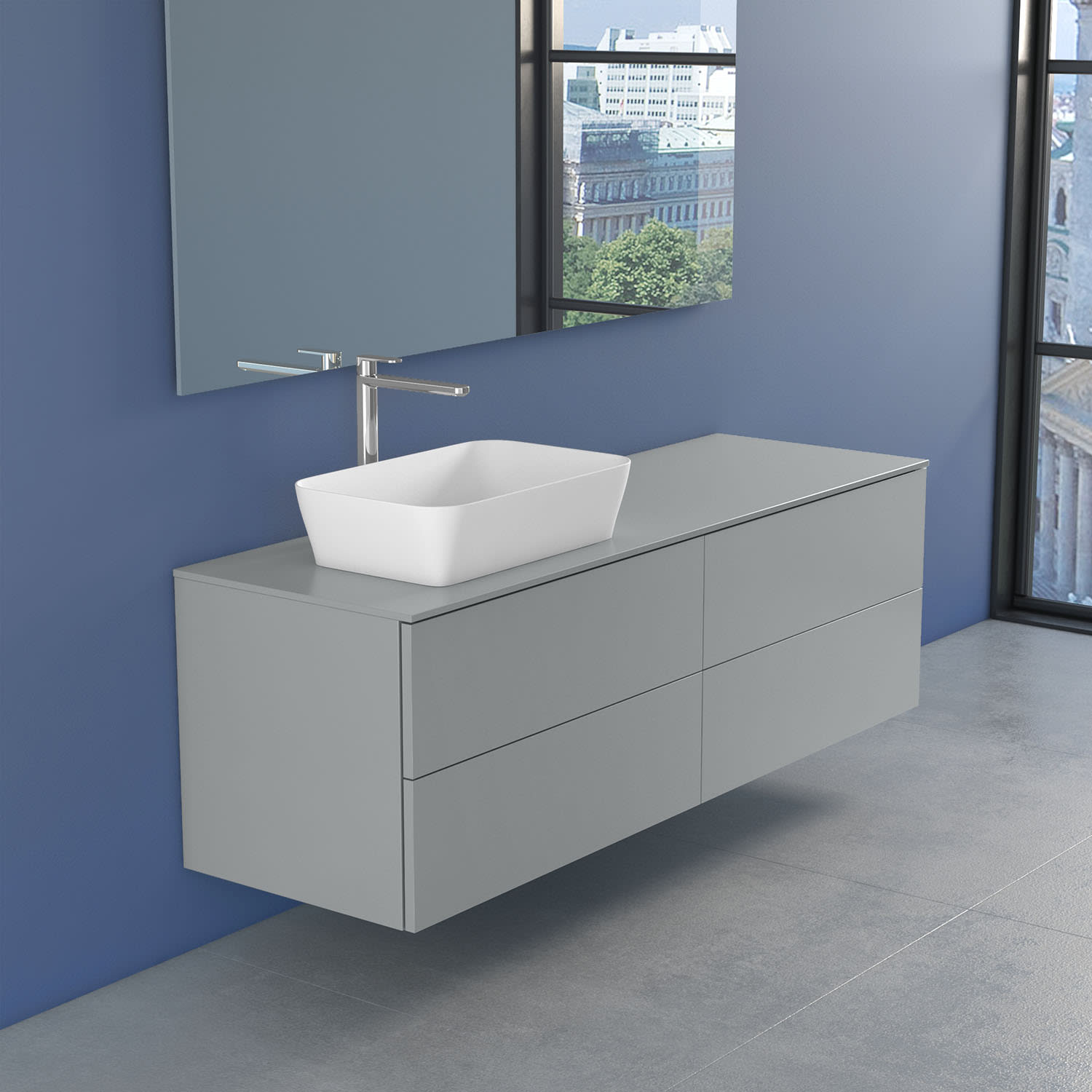 progettobagno Elba Unterschrank 160 cm Links mit Glasplatte, Hahnlochbohrung und FLY 56 Aufsatzwaschtisch