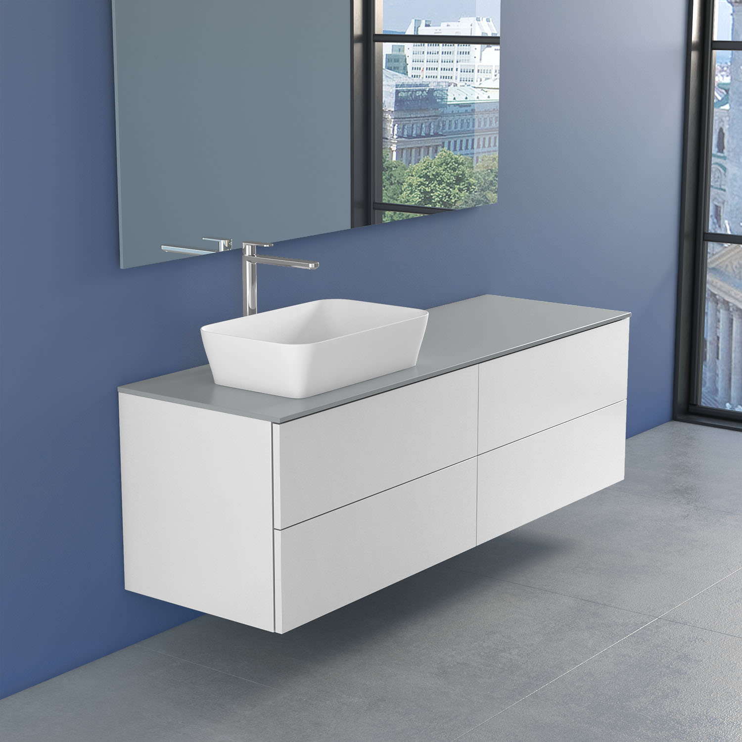 progettobagno Elba Unterschrank 160 cm Links mit Glasplatte ohne Hahnlochbohrung und FLY 56 Aufsatzwaschtisch
