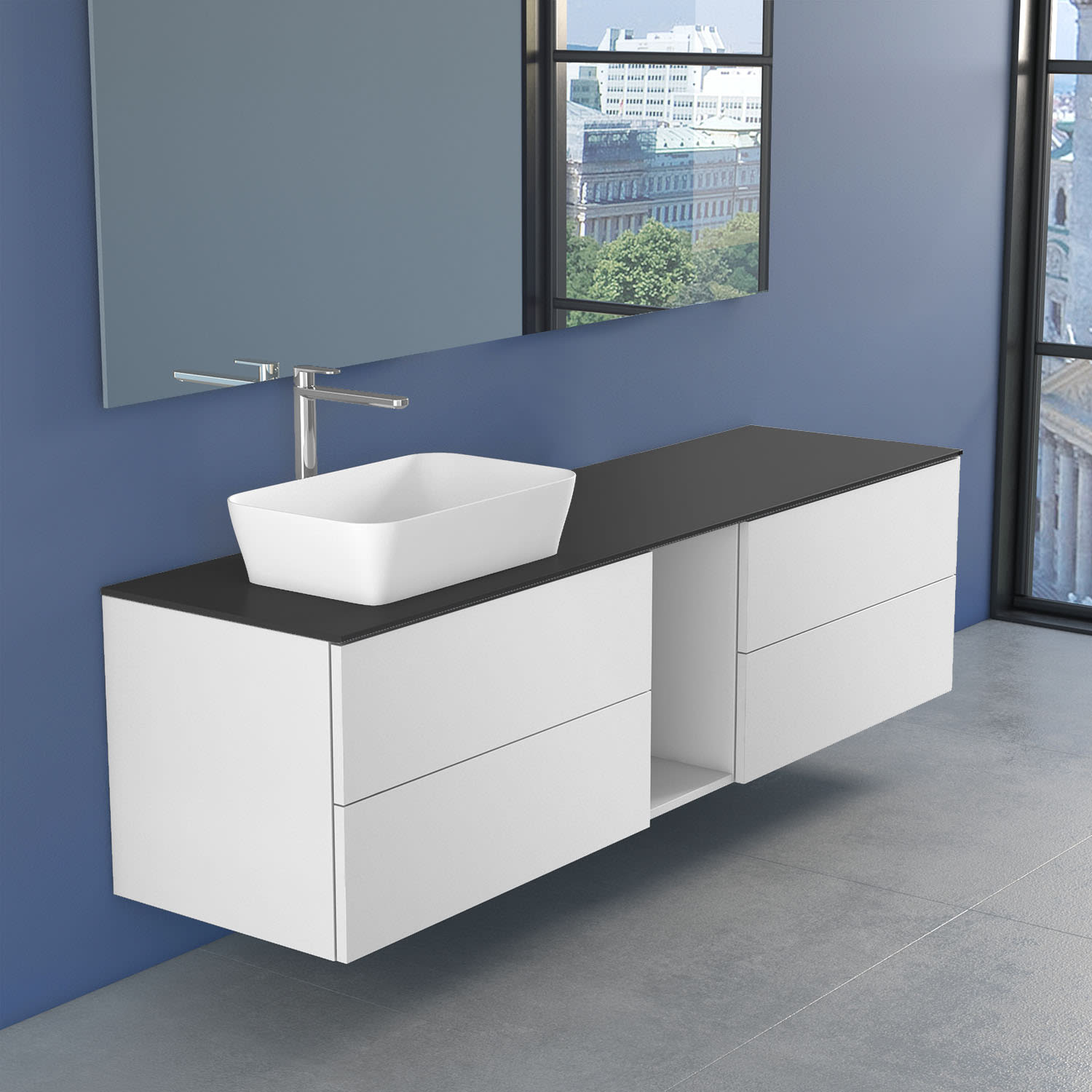 progettobagno Elba Unterschrank 190 cm Links mit Glasplatte, Hahnlochbohrung und FLY 56 Aufsatzwaschtisch