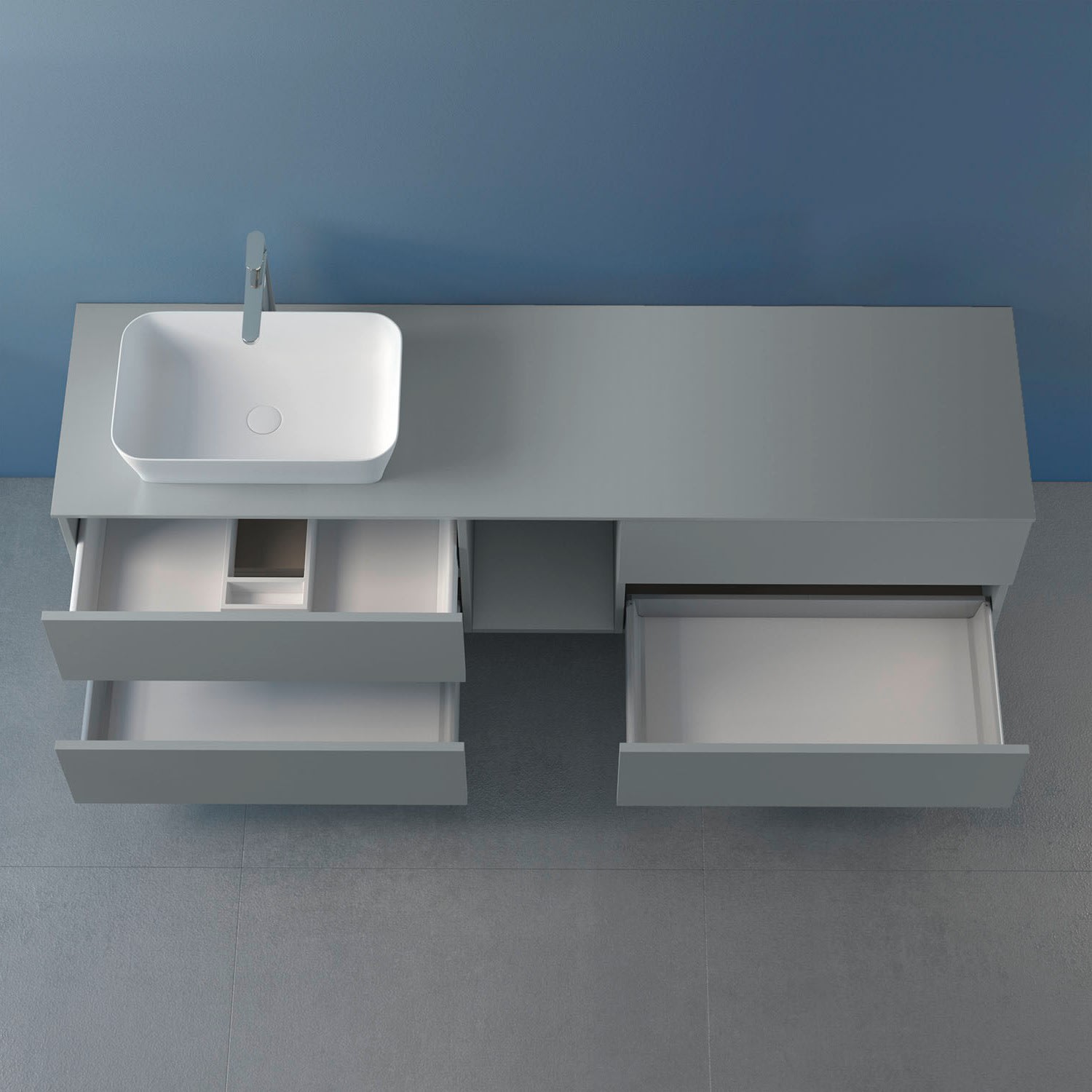 progettobagno Elba Unterschrank 190 cm Links mit Glasplatte,Hahnlochbohrung und FLY 56 Aufsatzwaschtisch