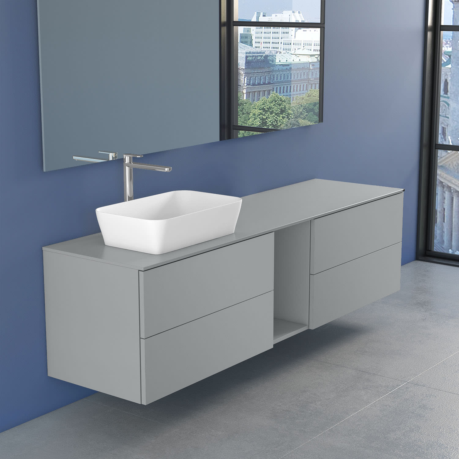 progettobagno Elba Unterschrank 190 cm Links mit Glasplatte ohne Hahnlochbohrung und FLY 56 Aufsatzwaschtisch