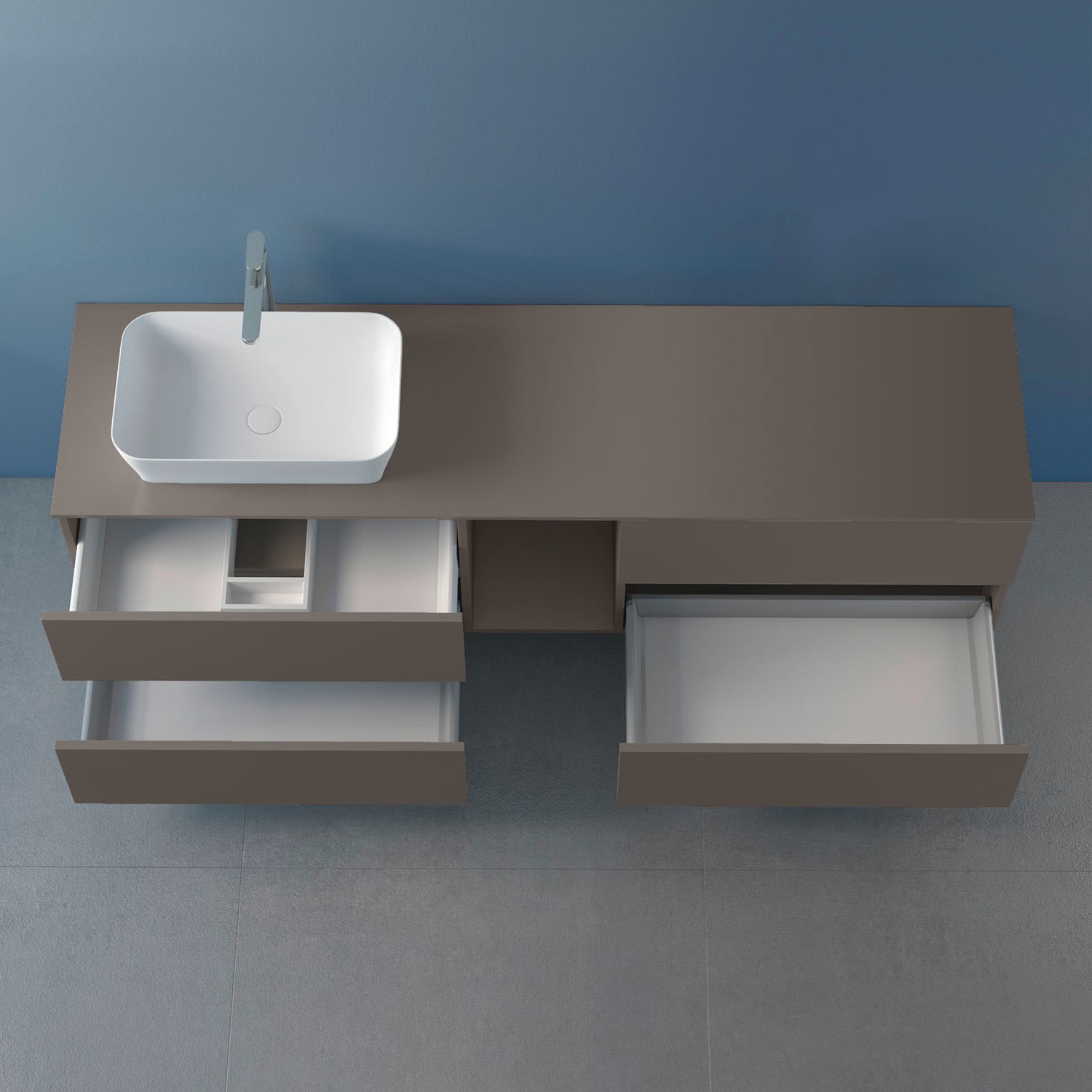 progettobagno Elba Unterschrank 190 cm Links mit Glasplatte ohne Hahnlochbohrung und FLY 56 Aufsatzwaschtisch