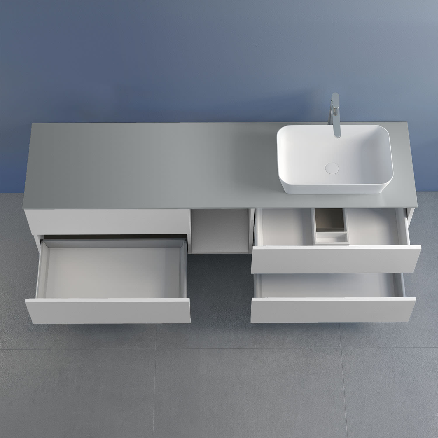 progettobagno Elba Unterschrank 190 cm Rechts mit Glasplatte ohne Hahnlochbohrung und FLY 56 Aufsatzwaschtisch