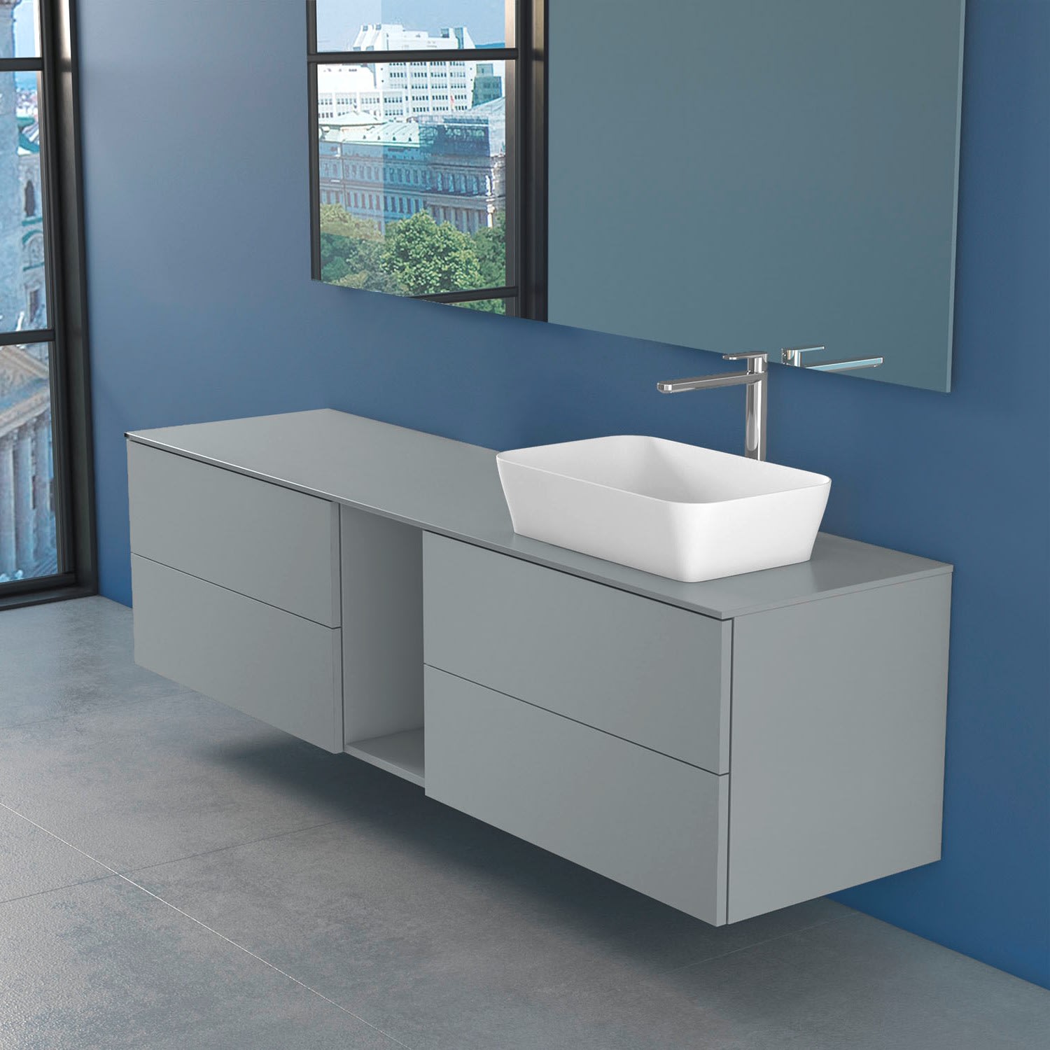 progettobagno Elba Unterschrank 190 cm Rechts mit Glasplatte ohne Hahnlochbohrung und FLY 56 Aufsatzwaschtisch