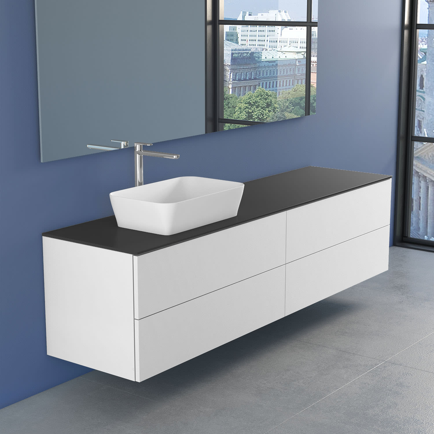 progettobagno Elba Unterschrank 200 cm Links mit Glasplatte ohne Hahnlochbohrung und FLY 56 Aufsatzwaschtisch