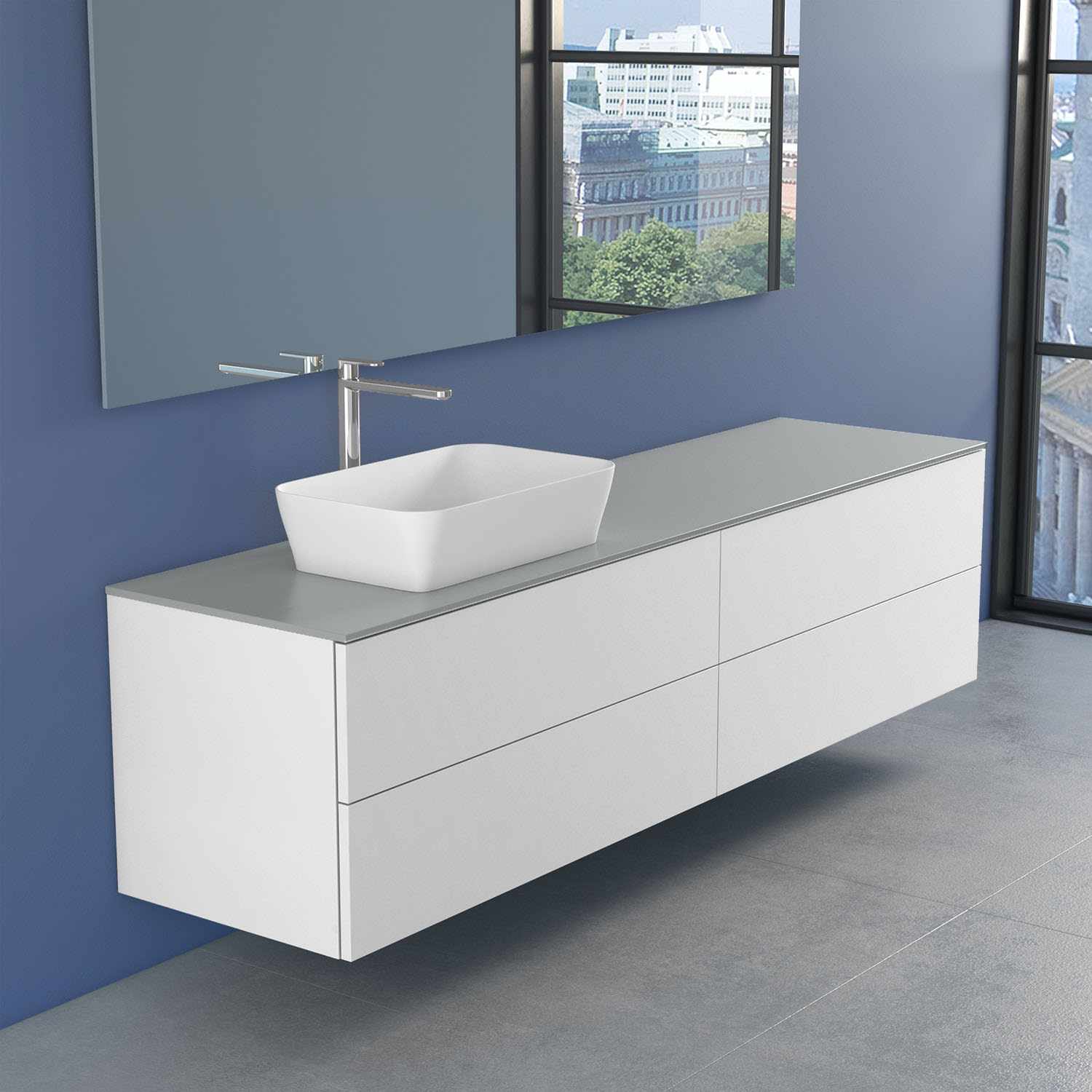 progettobagno Elba Unterschrank 200 cm Links mit Glasplatte ohne Hahnlochbohrung und FLY 56 Aufsatzwaschtisch
