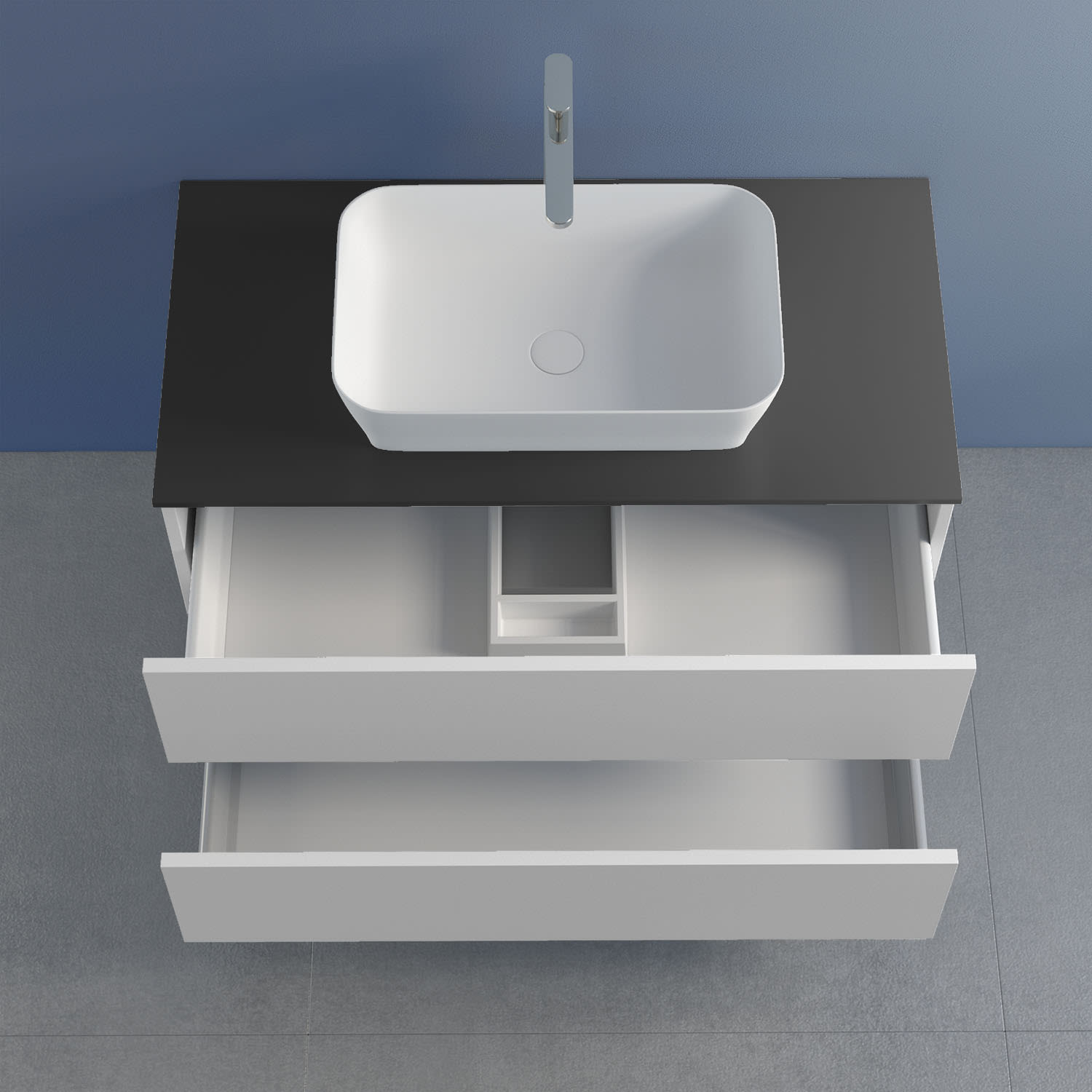 progettobagno Elba Unterschrank 80 cm mit Glasplatte ohne Hahnlochbohrung und FLY 56 Aufsatzwaschtisch