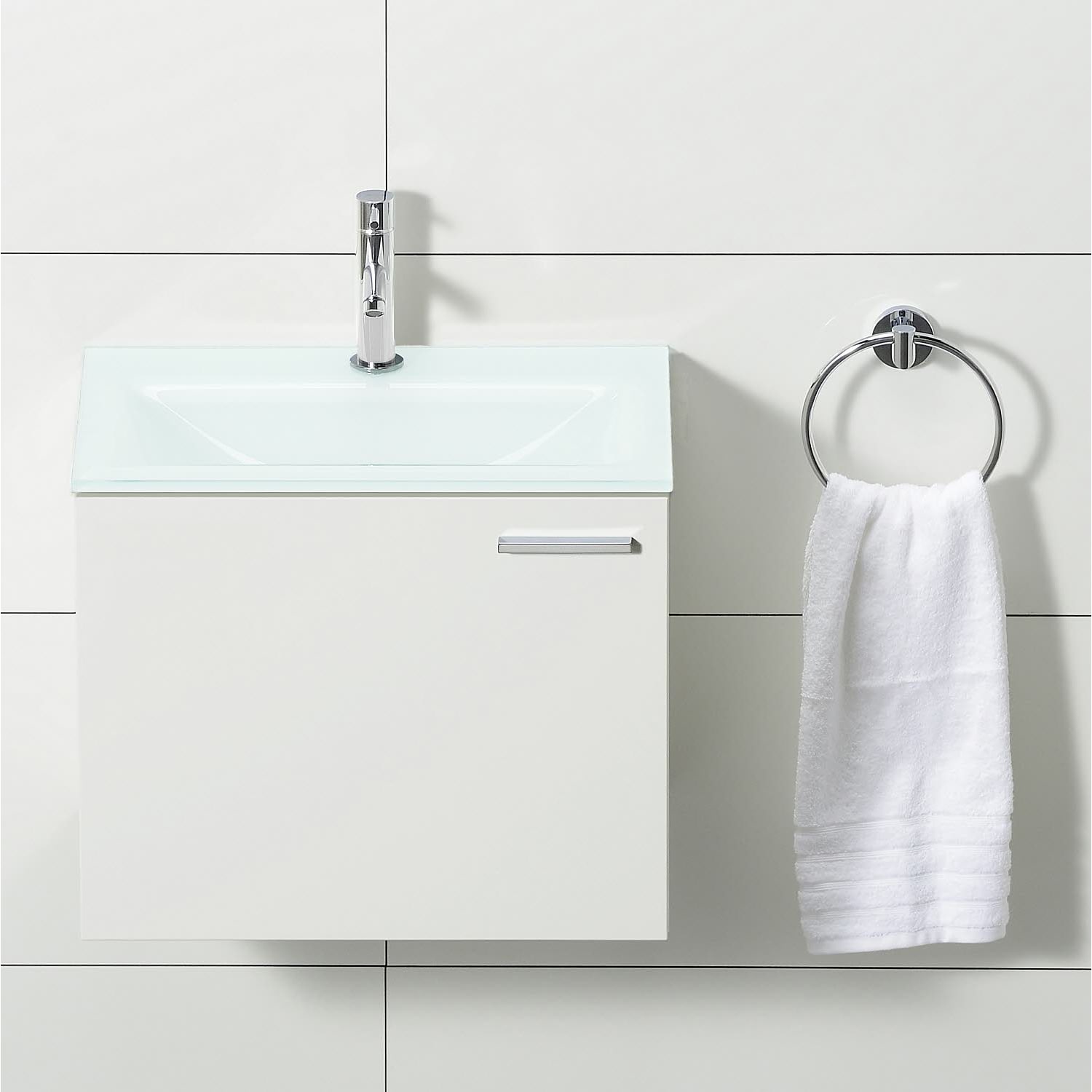 progettobagno Enea 50 Gästewaschtischkombination mit Glaswaschtisch 50 cm, Türanschlag links