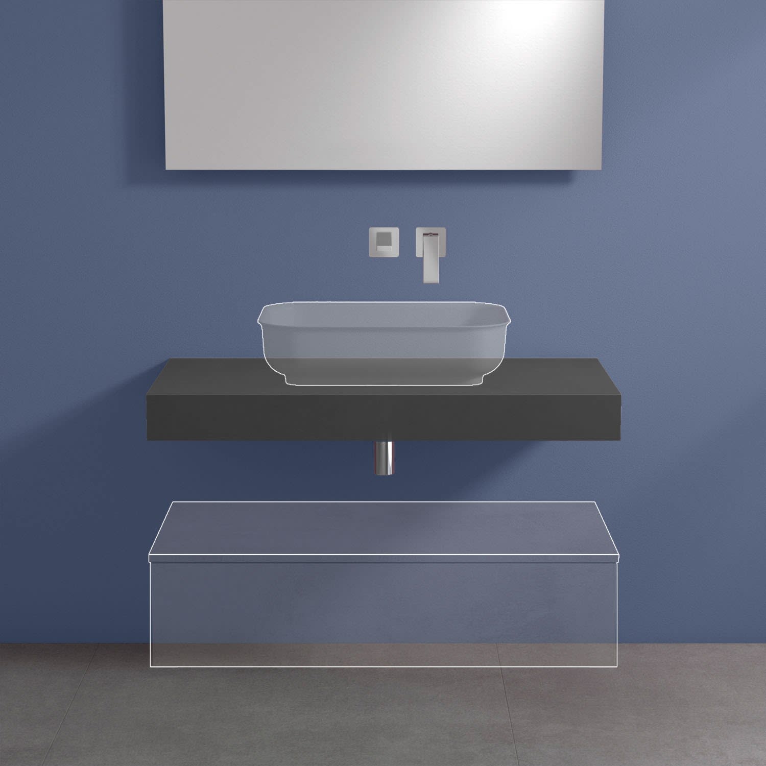 - Waschtisch und Armatur nicht im Lieferumfang enthalten!