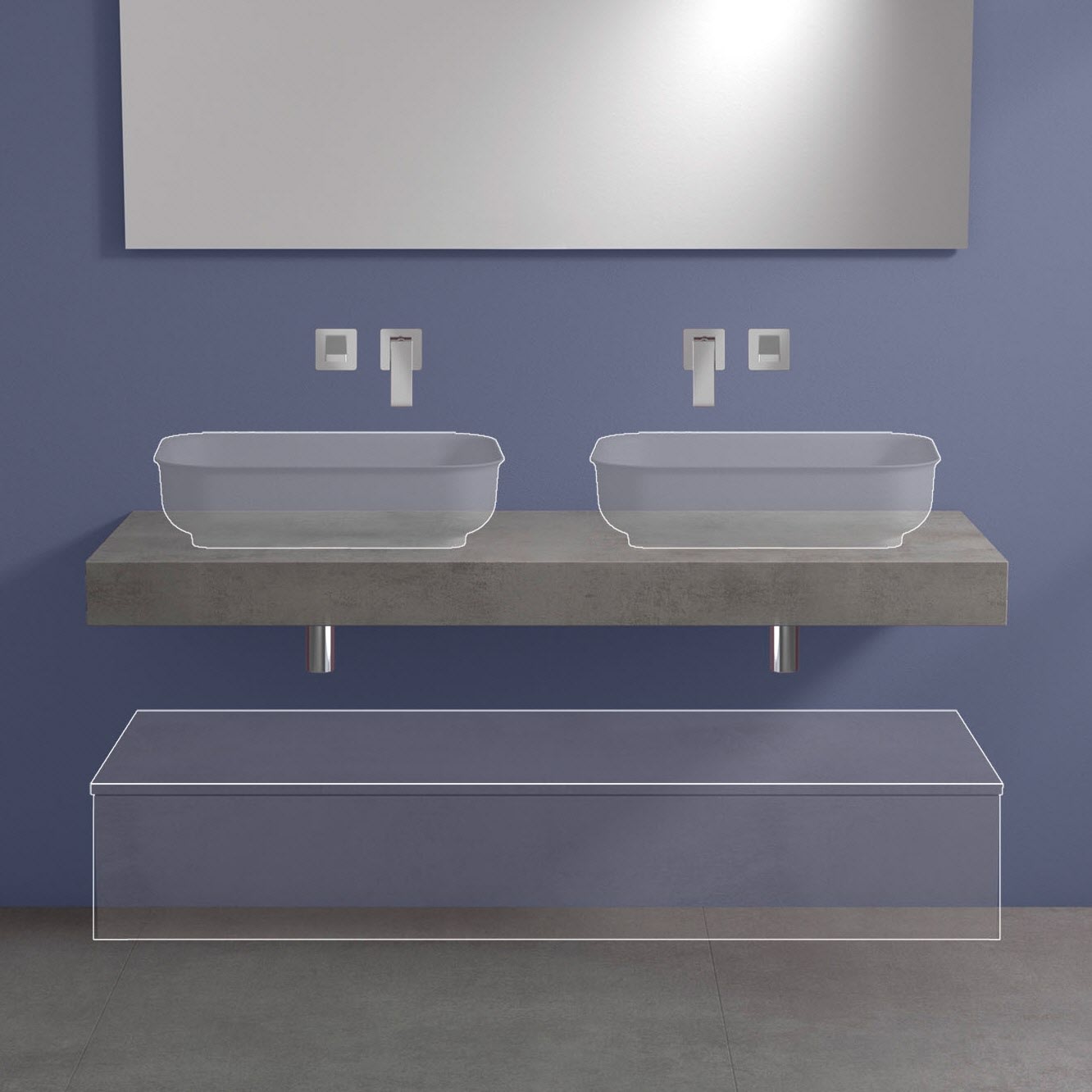 - Waschtisch und Armatur nicht im Lieferumfang enthalten!