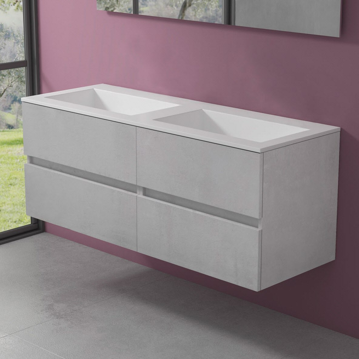 progettobagno Evo 54 Lago Doppel-Waschtisch mit Unterschrank 140 cm ohne Hahnloch