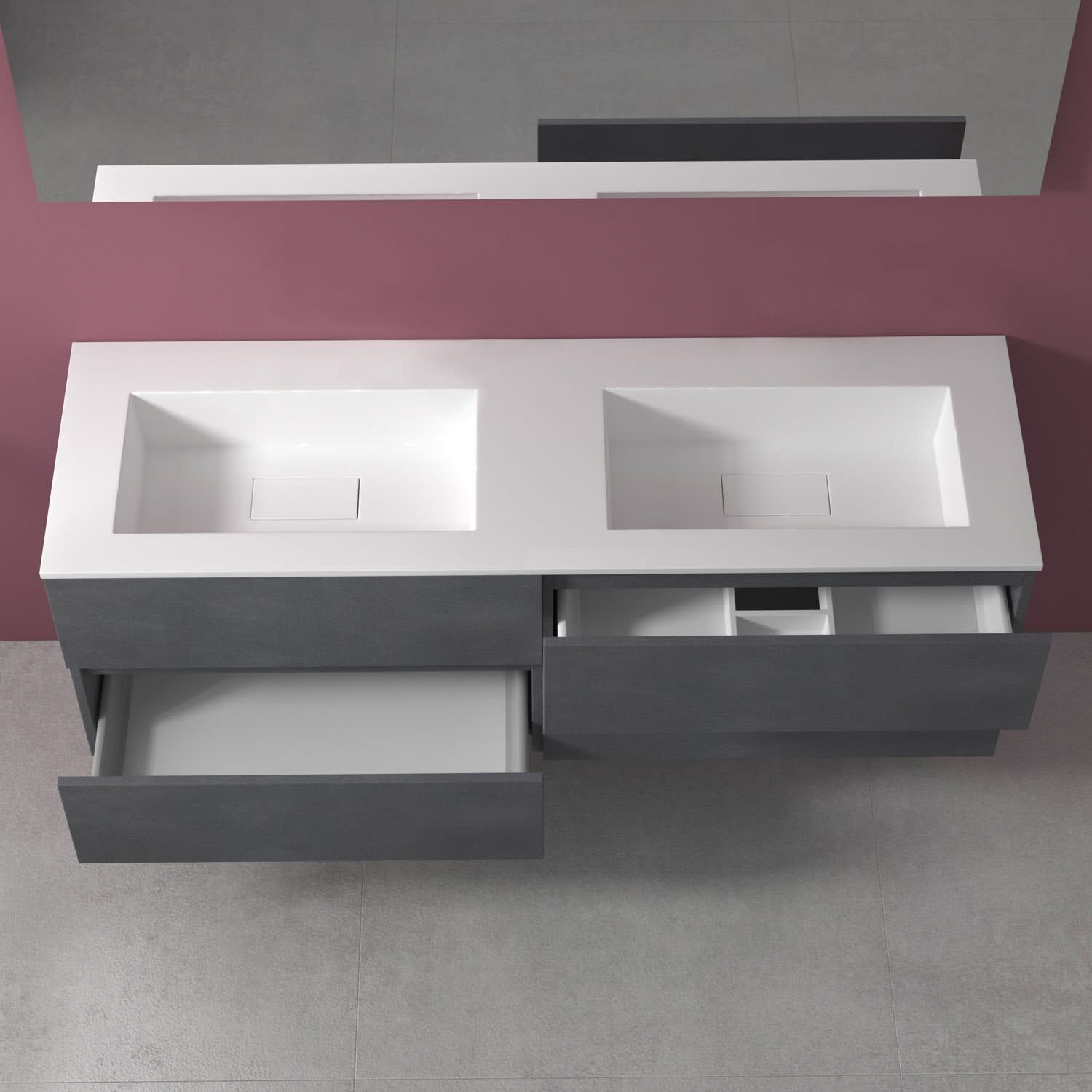 progettobagno Evo 54 Lago Doppel-Waschtisch mit Unterschrank 160 cm ohne Hahnloch