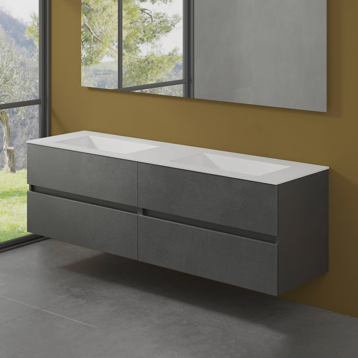 progettobagno Evo 54 Lago Doppel-Waschtisch mit Unterschrank 180 cm ohne Hahnloch
