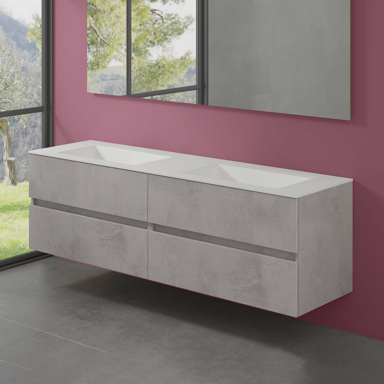progettobagno Evo 54 Lago Doppel-Waschtisch mit Unterschrank 180 cm ohne Hahnloch
