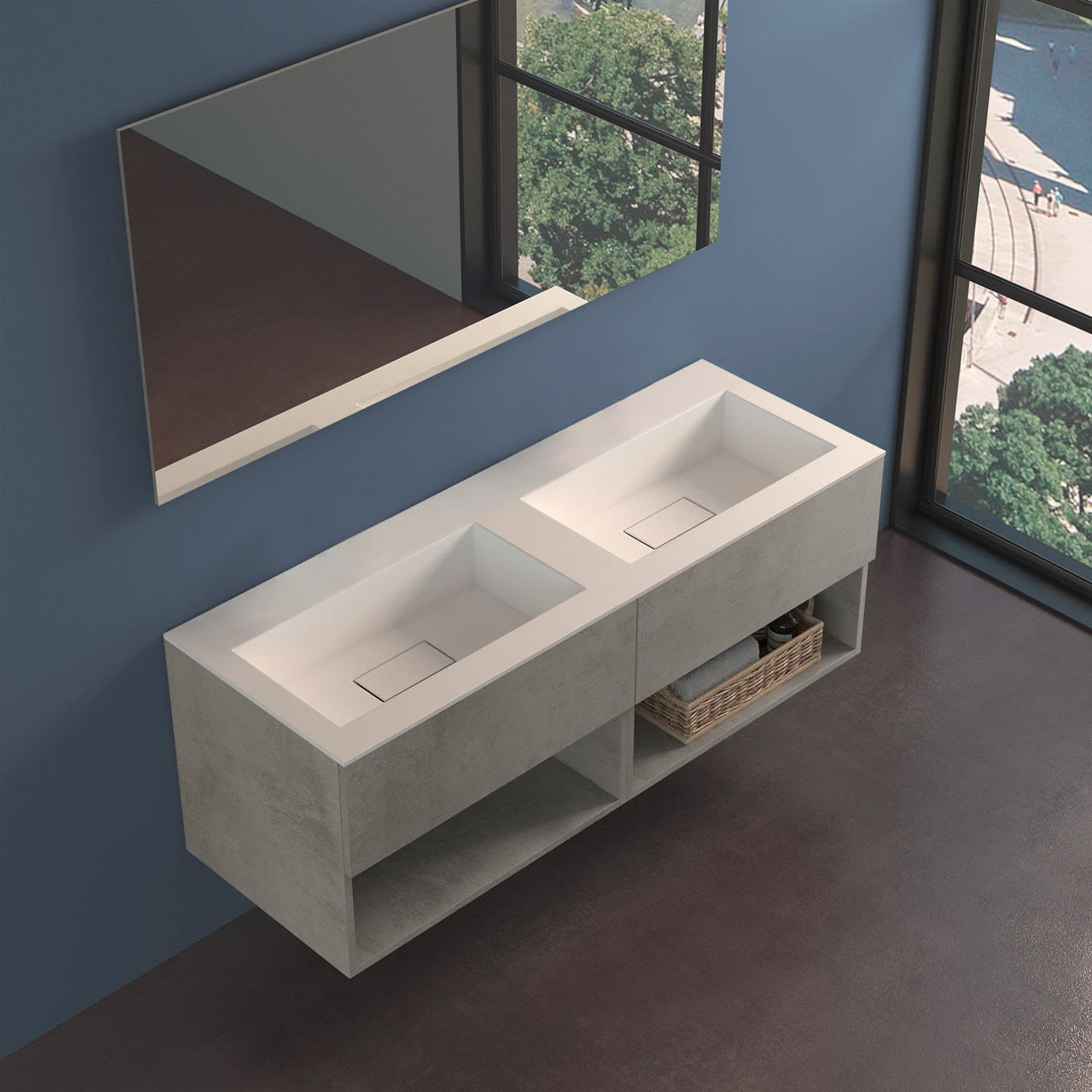 progettobagno Evo 54 Lago Uno Doppel-Waschtisch mit Unterschrank 140 cm ohne Hahnloch