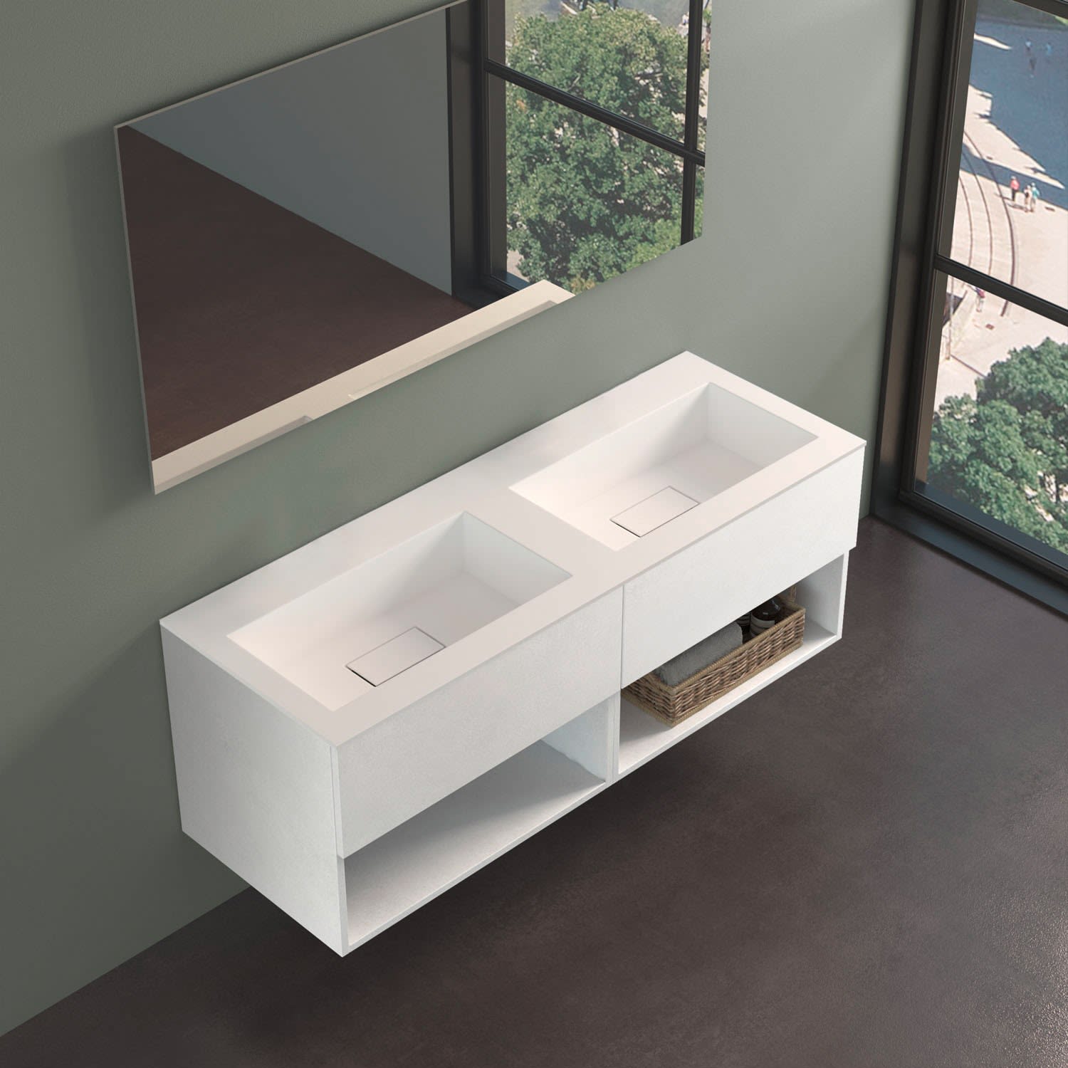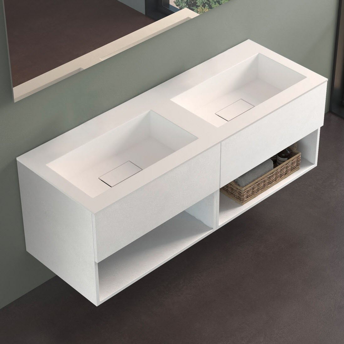 progettobagno Evo 54 Lago Uno Doppel-Waschtisch mit Unterschrank 140 cm ohne Hahnloch