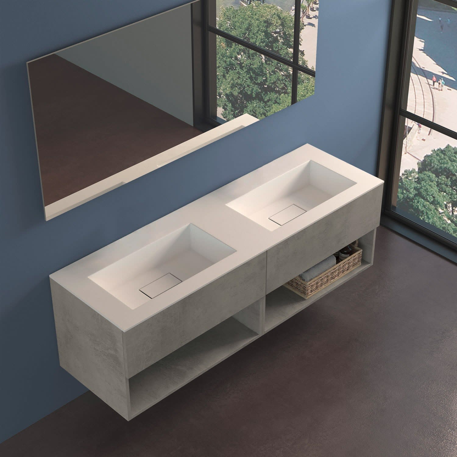 progettobagno Evo 54 Lago Uno Doppel-Waschtisch mit Unterschrank 160 cm ohne Hahnloch