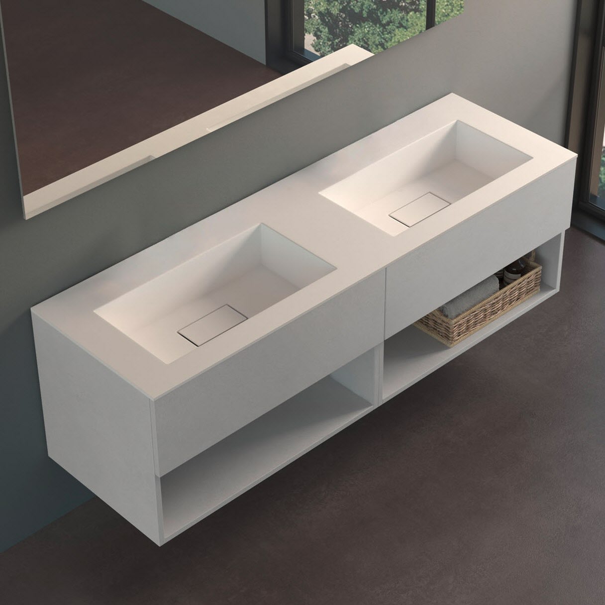 progettobagno Evo 54 Lago Uno Doppel-Waschtisch mit Unterschrank 160 cm ohne Hahnloch