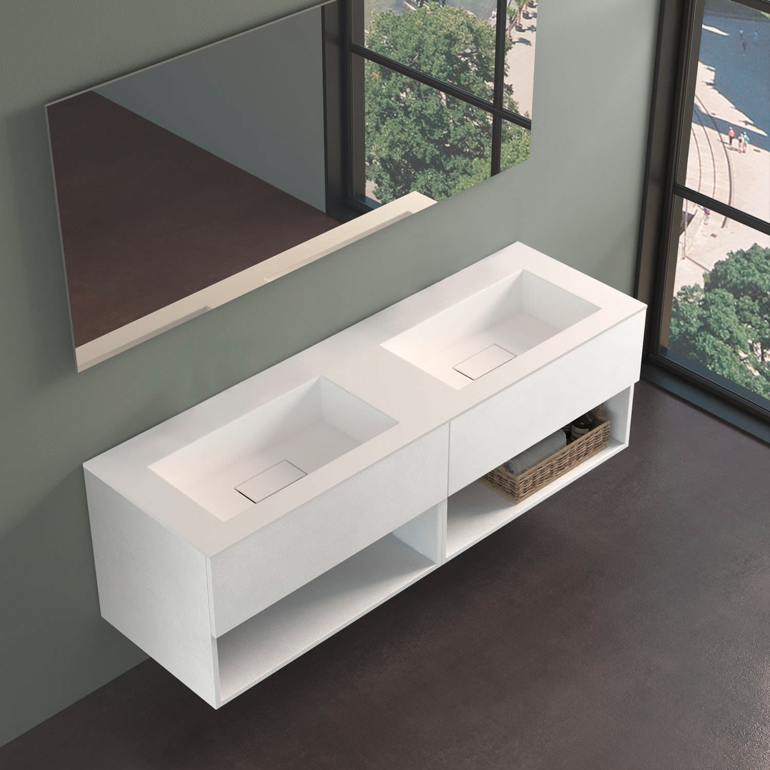 progettobagno Evo 54 Lago Uno Doppel-Waschtisch mit Unterschrank 160 cm ohne Hahnloch